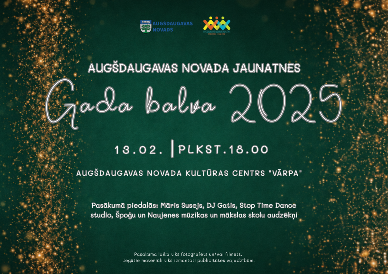 13. februārī Augšdaugavas novada kultūras centrā “Vārpa” notiks jau tradicionālā Augšdaugavas novada Jaunatnes Gada balva.