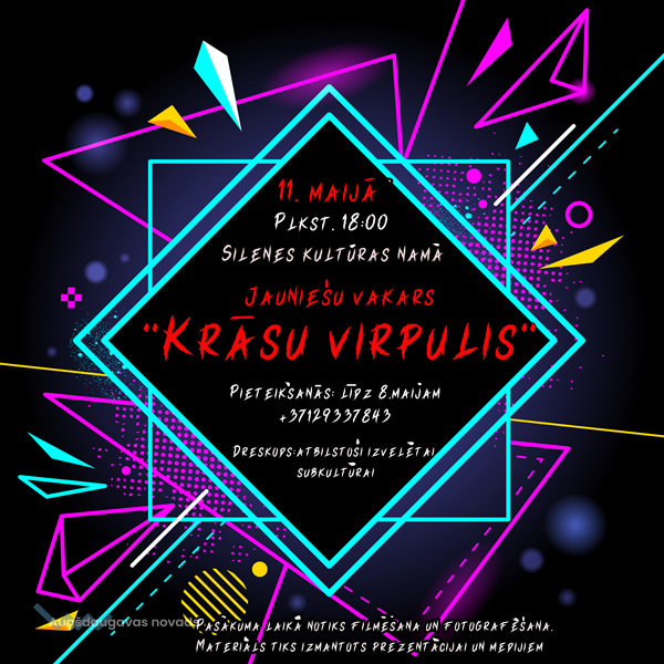 11.maijā plkst. 18:00 Silenes kultūras namā notiks jauniešu vakars "Krāsu virpulis". Pieteikšanās līdz 24. aprīlim.