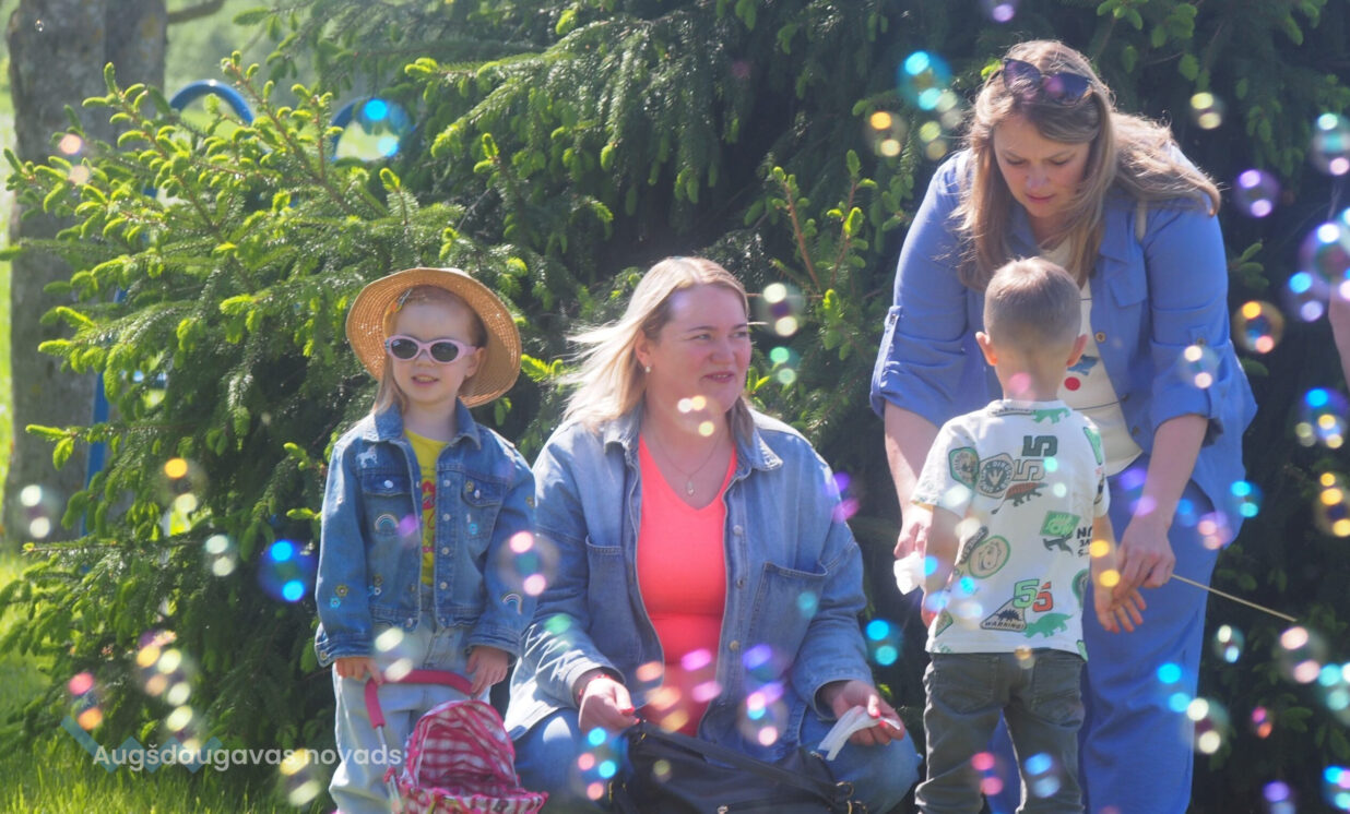 Pat daba sniedza savu svētku atbalstu – saulē, vieglajam vējiņam pūšot, veidojās īpaši lieli, varavīksnes krāsas ziepju burbuļi.