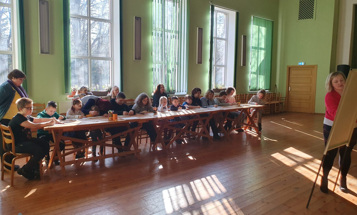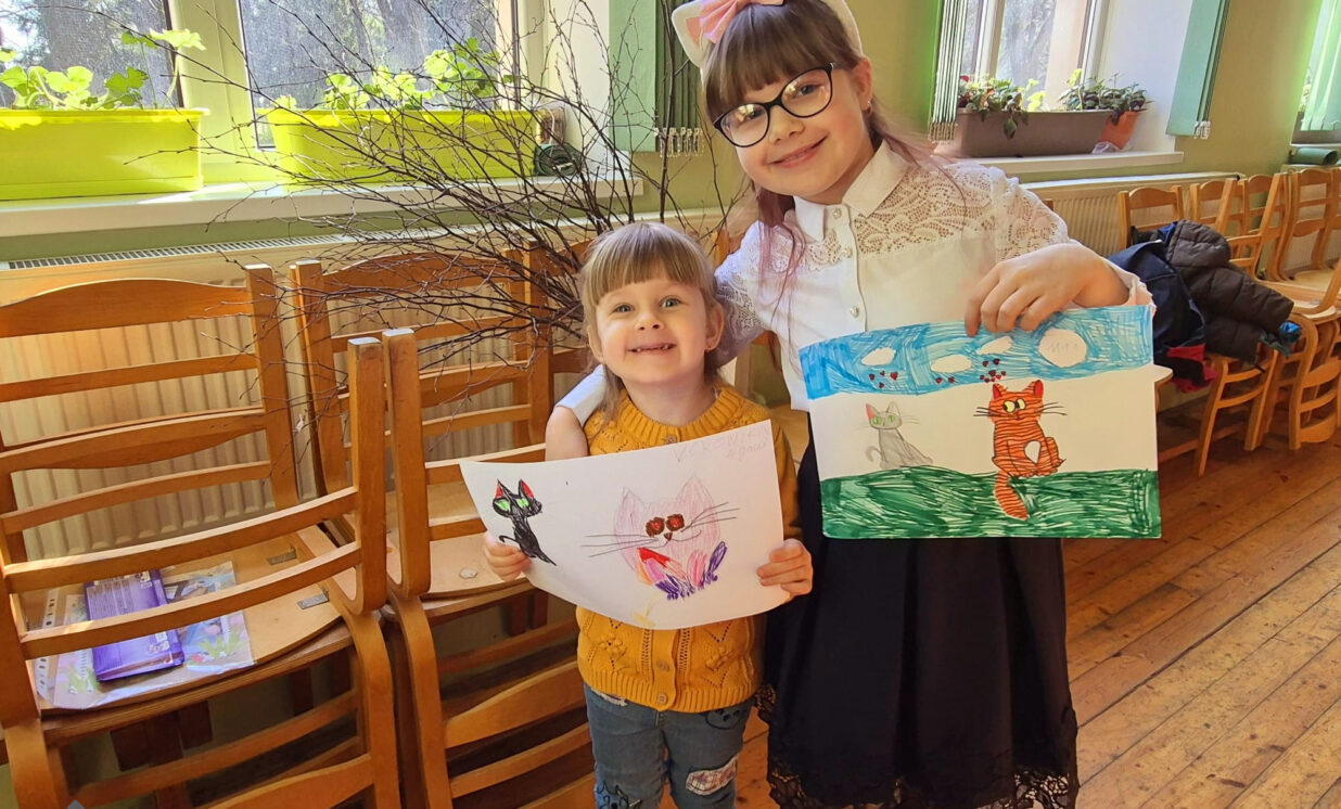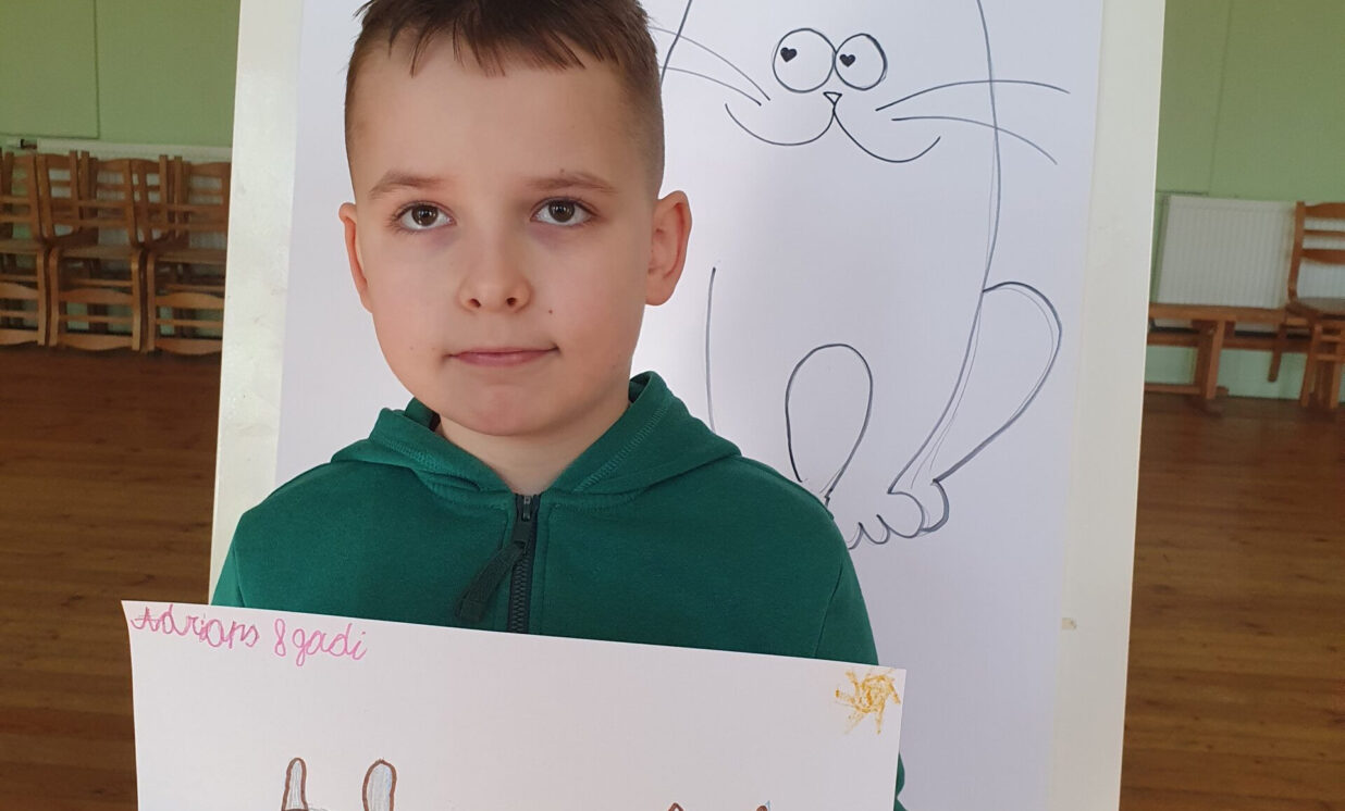 Pēc apbalvošanas kopā ar mākslinieci devāmies uzlabot savas zīmēšanas prasmes. Gan lieliem, gan maziem bija iespēja iemācīties zīmēt multiplikācijas kaķus. Izdevās visiem!
