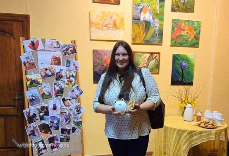 “Ja vēlaties veselību un vieglumu, esiet draugos ar kaķi! Katru dienu un maksimālās devās. Kaķi palīdzēs, ja jums būs vientuļi, — rūpes par mājas mīluli palīdzēs novērst uzmanību no pārdzīvojumiem un justies vajadzīgam un vērtīgam. Tie ir mīksti, pūkaini, rotaļīgi, tiem ir greznas astes un mierinoša, līgana murrāšana. Pat foto, video vai glezna ar kaķīšiem spēj vienā momentā uzlabot garastāvokli!” tā par savas gleznas varoņiem izteicas talantīga māksliniece, Salienas pagasta bibliotēkas vadītāja Jeļena Požarska.