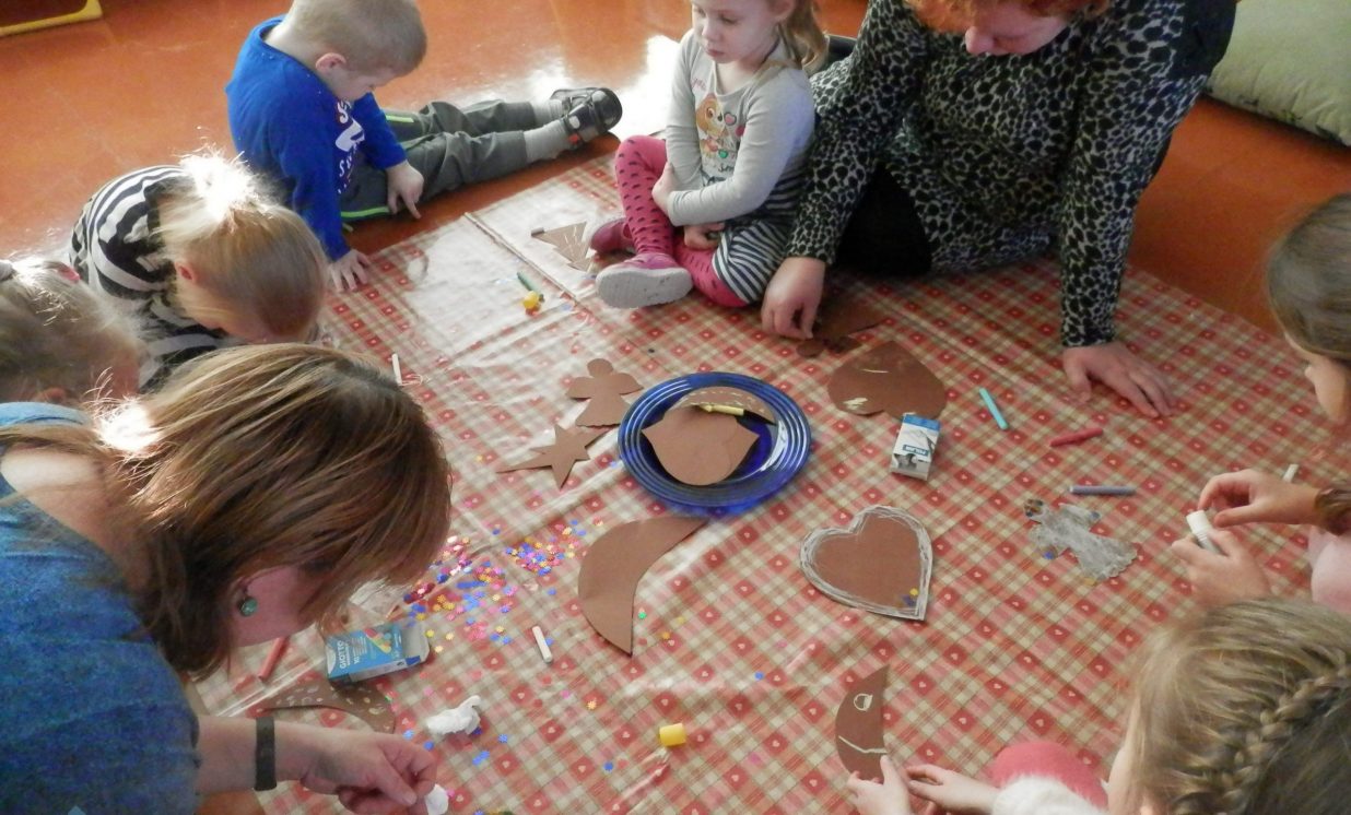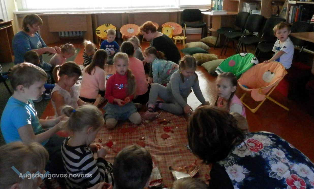 Bērni noklausījās Ulda Ausekļa dzejoļus par gatavošanos Ziemassvētkiem un piparkūku cepšanu kopā ar vecmāmiņu. Tad visi kopā dziedāja draisko piparkūku cepēju dziesmiņu “Piparkūkas danco”.