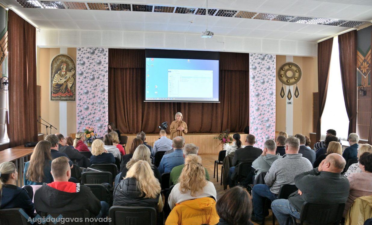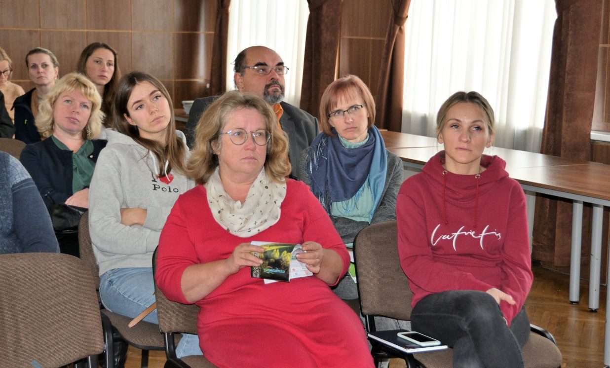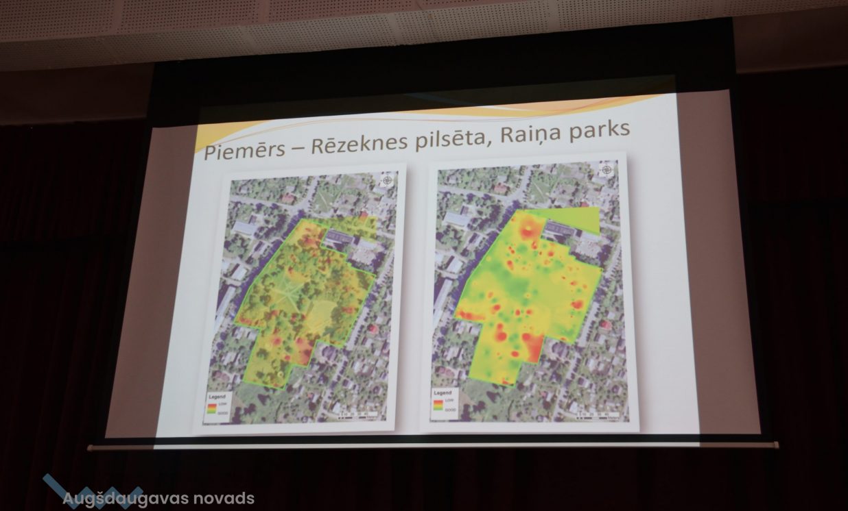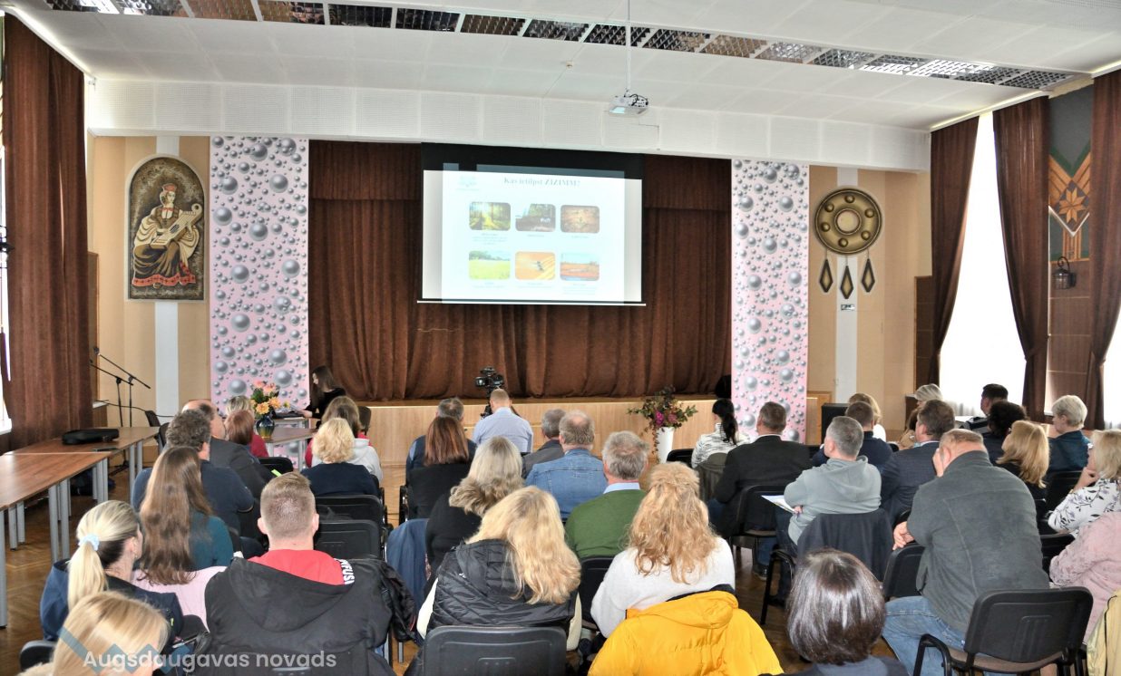 Daugavpils Universitātes Vides zinātnes un ķīmijas katedras pārstāve Irēna Pučkina klātesošiem skaidroja klimata un siltumnīcas efekta nozīmi, globālās sasilšanas procesu un tā sekas, iepazīstināja ar nākotnes klimata prognozēm un klimata pārmaiņām Latvijā, kā arī adaptāciju tām. Pēc I. Pučkinas teiktā, vismaz kopš 20. gs. sākuma praktiski visā pasaulē ir vērojama zemes virsas temperatūras paaugstināšanās, kas reizē nes arī nokrišņu pieaugumu un dabas katastrofu biežuma palielināšanos. Cilvēka darbības rezultātā, proti, fosilā kurināmā sadedzināšanas rezultātā un intensīvās lauksaimniecības dēļ, Zemes atmosfērā strauji pieaug oglekļa dioksīda (CO2), metāna (CH4) un dislāpekļa oksīda (N20) apjoms. Pētnieki prognozē, ka Latvijā līdz 2100. gadam vidējā gaisa temperatūra arvien palielināsies. Krasākās izmaiņas būs sagaidāmas valsts austrumu daļā ziemas periodā. Ziemā pieaugs minimālās temperatūras grādi, bet vasarā maksimālās gaisa temperatūras rādītāji. Nākotnē Latviju sagaida karstuma viļņu biežums un ilgums, kā arī tropisko nakšu un vasaras dienu skaits. Paaugstināsies augšanas sezonas ilgums par 1 līdz 2 mēnešiem. Nākotnē nāksies saskarties ar Latvijas teritorijai neraksturīgiem un ekstremāliem laika apstākļiem.