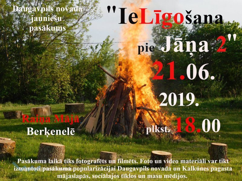 21. jūnijā no plkst. 18.00 līdz 22.00 Kalkūnes pagastā, Jāņa Raiņa mājā Berķenelē, norisināsies Daugavpils novada jauniešu pasākums „Ielīgošana pie Jāņa 2”.