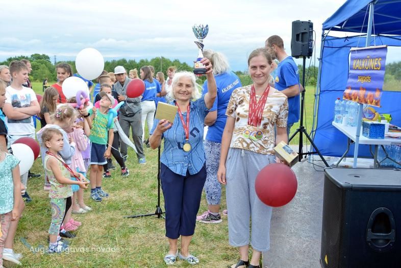 Nslēgumā notika sacensību rezultātu apkopošana un, protams, uzvarētāju apbalvošana. Galveno balvu “Stiprākā ģimene Kalkūnes pagastā” vinnēja aktīvā Aņisimovu ģimene. Kopā ar Kalkūnes pagasta iedzīvotājiem tika uztaisīta kopbilde par piemiņu Latvijas jubilejai.