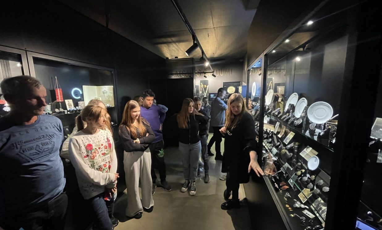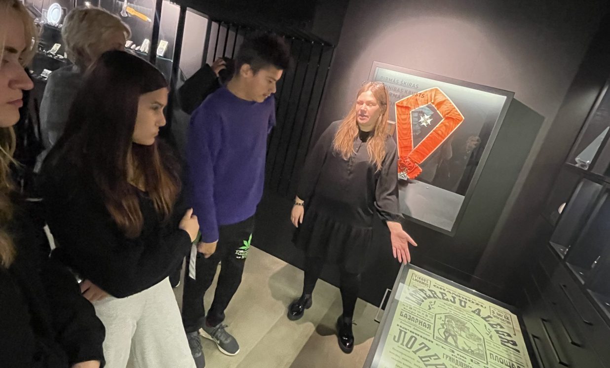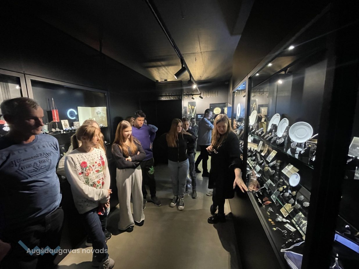 Tālākais ekskursijas maršruts veda mūs uz skaisto Rēzekni, nākamā apskates vieta bija Brīvvalsts dārgumu nams. Uzzinājām, ka tā sienas ir būvētas no akmeņiem, kas savākti no Rēzeknes pilskalna pilsdrupām. Jauniešus pārsteidza jaunais, modernais muzejs, kurā eksponēti vairāki simti dažādu vēstures liecību, kas ļauj uzzināt par laika posmu no 1918. gada līdz 1940. gadam. Kolekcijā var redzēt ļoti daudz Latvijas valsts robežsargu, policijas darbinieku dažādus militāros apbalvojumus, krūšu nozīmes, ordeņus, dokumentus, fotogrāfijas, zobenus. Jauniešiem īpaši patika iespēja digitāli nofotografēties ar seno, īpaši unikālo Rēzeknes pilsētas galvas amata ķēdi. Ar interesi viņi aplūkoja Latvijas ordeņus, kurus par varonību un uzticību savai valstij saņēmuši latgalieši. Izstāžu namā redzamie priekšmeti ir no Latvijas un ārzemju privātkolekcijām. Lielākā to daļa līdz šim apskatei plašākai sabiedrībai nebija pieejama, nav eksponēta arī citos muzejos. Lai ekspozīcija taptu, tika iesaistīti vairāk nekā desmit kolekcionāri. Daudz darba ieguldīts, bet rezultāts lielisks, vēsturiskas elpas apdvests.
