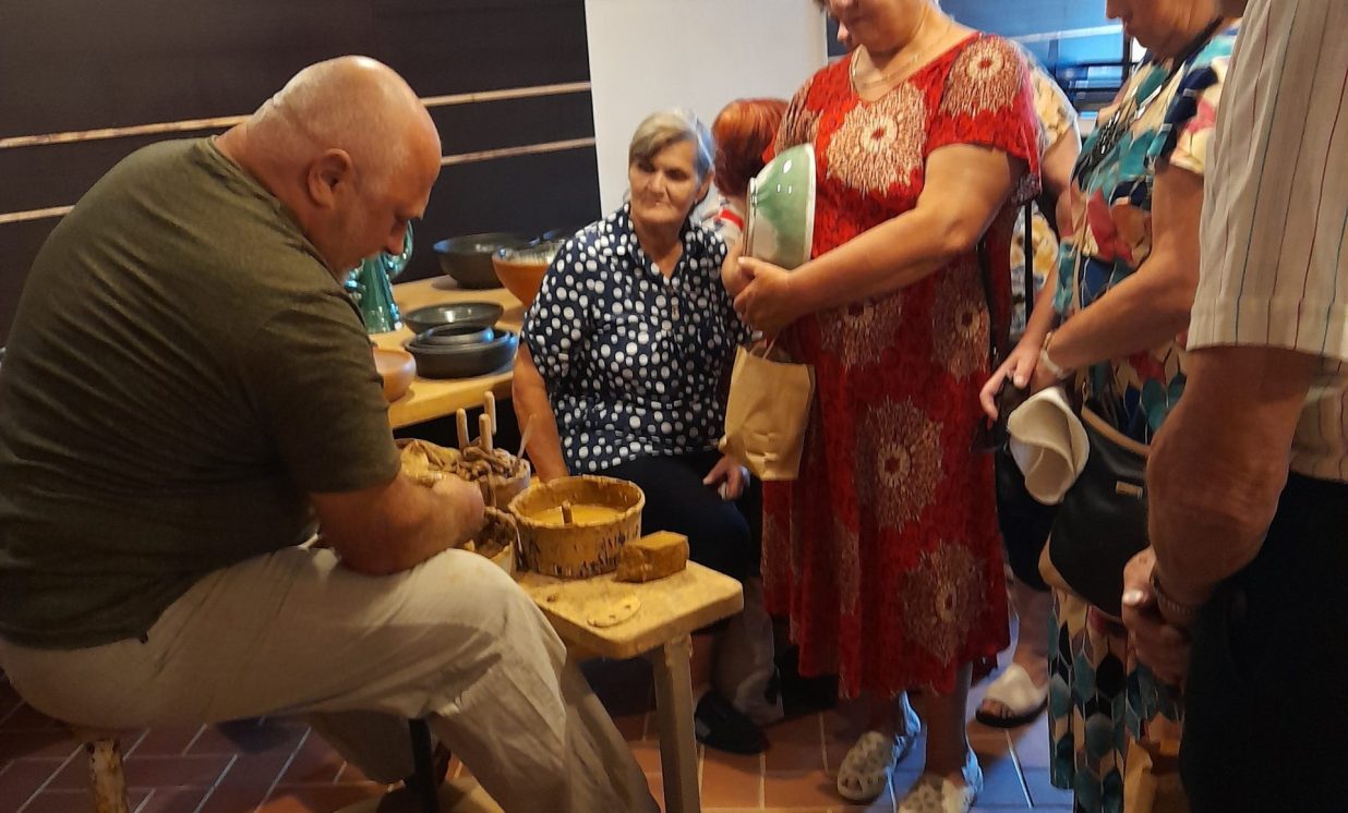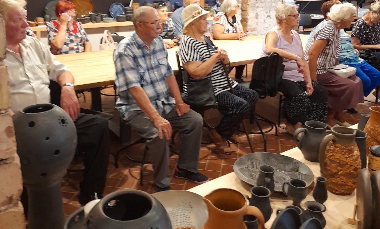Jaunajā Krāslavas Amatniecības centrā tikāmies ar keramiķiem Valdi un Olgu Pauliņiem, kuri izrādīja savus darbus, dzirdējām stāstus un noskatījāmies filmu par izstrādājumu tapšanas gaitu. Kā arī paši iegādājāmies dažādus suvenīrus.