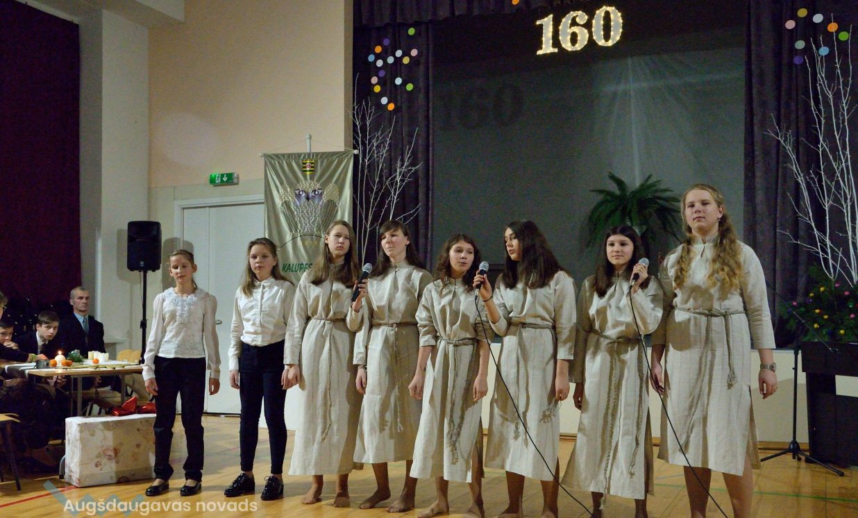 Aizvadītajās brīvdienās Kalupes skola svinēja savu 160 gadu jubileju. Pasākuma svinīgā daļa iesakās ar Kalupes skolas karoga ienešanu, uz kura simboliski attēlots gudrības un vieduma simbols – pūce.