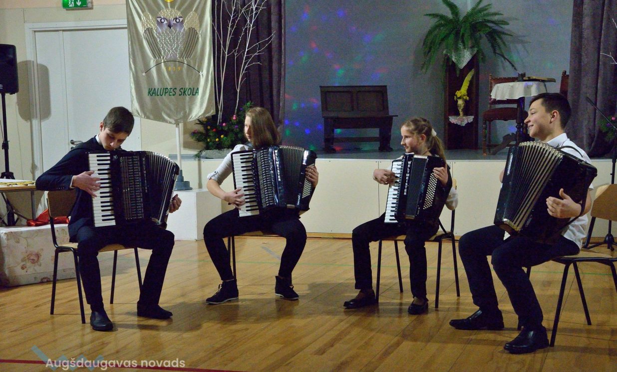 Pasākumu ar muzikālo pavadījumu, skaņdarbiem uz dažādiem mūzikas instrumentiem, dejām un dziesmām skaistināja nākamie absolventi, 9. klases skolnieki.