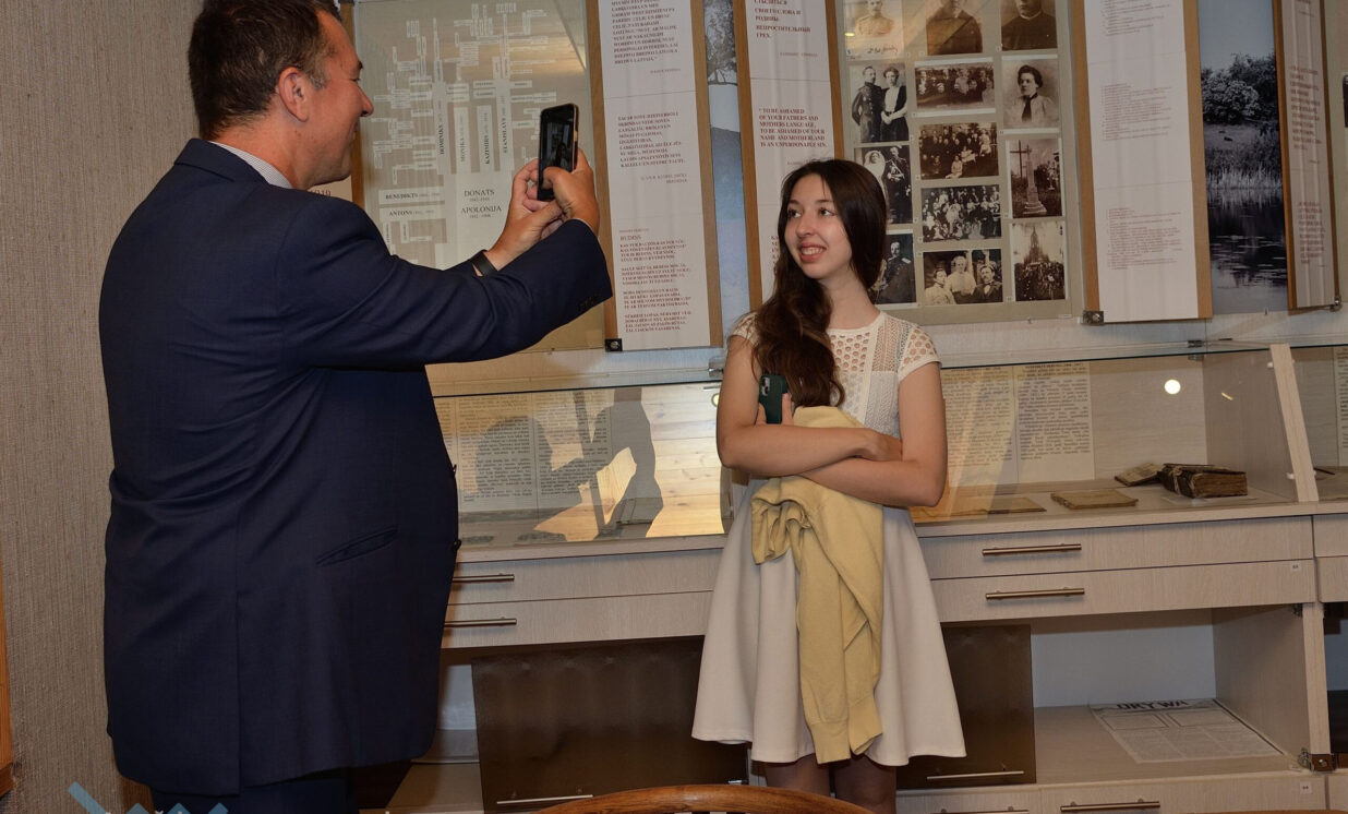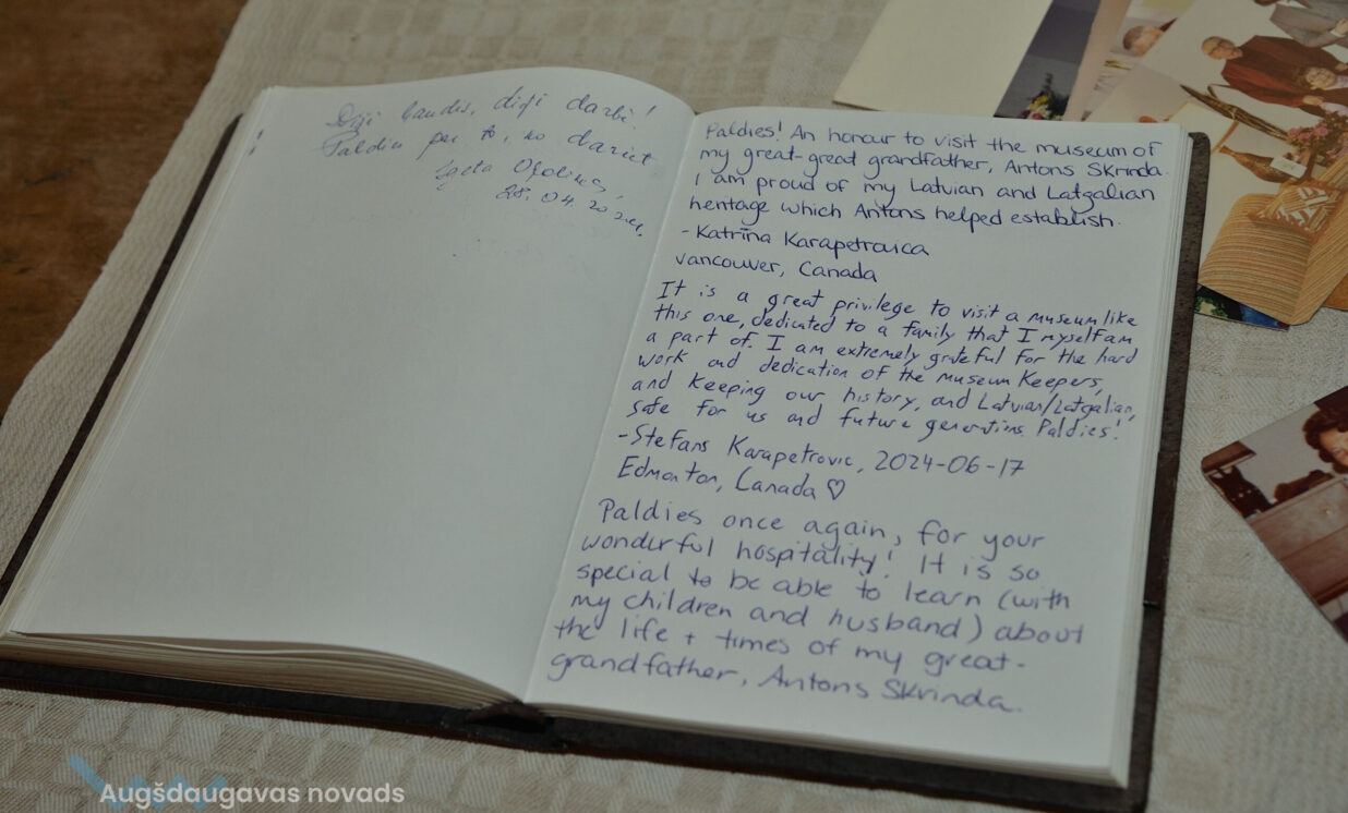 Lai arī pirmdiena, 17. jūnijs, Skrindu dzimtas muzejā bija oficiāla brīvdiena, šajā dienā muzeja durvis bija vaļā, jo ciemos atbrauca Antona Skrindas tuvinieki no Kanādas – mazmazmeita Karla ar vīru Stanislavu un abiem bērniem Katarīnu un Stefanu.