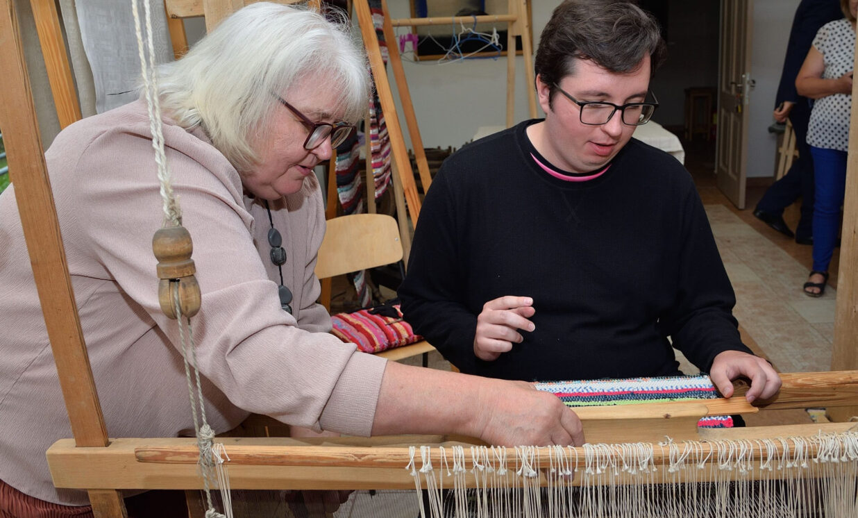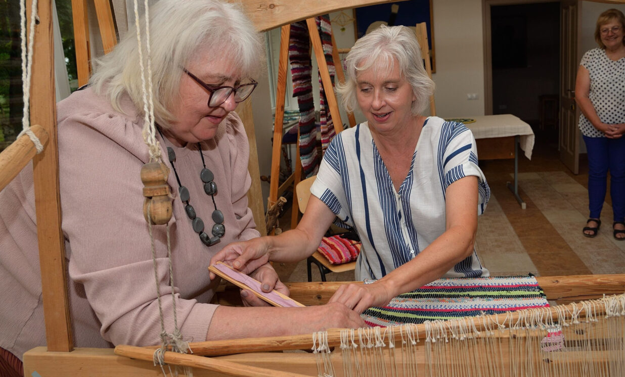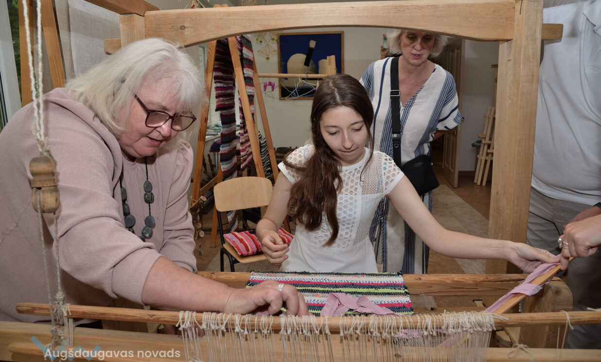 Karla un abi bērni sēdās pie senām stellēm un ieauda dažus pavedienus raibā lupatu deķītī. Šāda pieredze gūta pirmo reizi un ir ļoti simboliska, jo arī Leokādija bijusi prasmīga audēja.