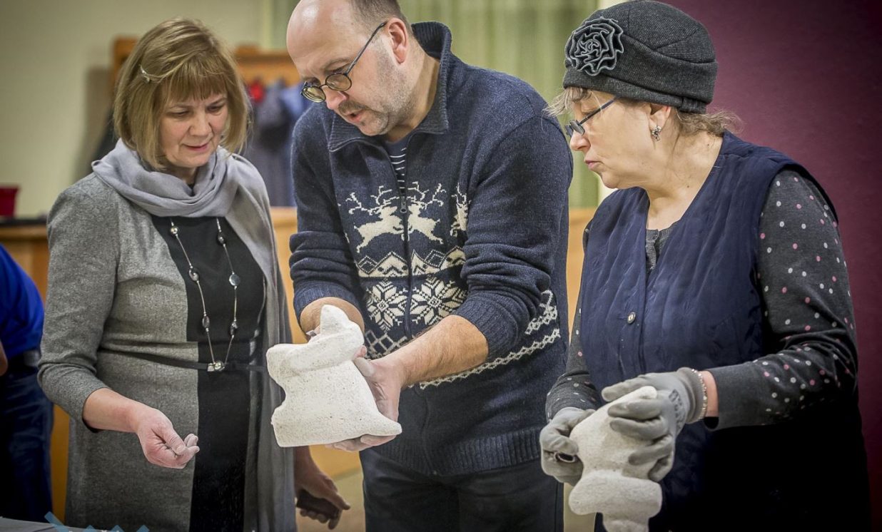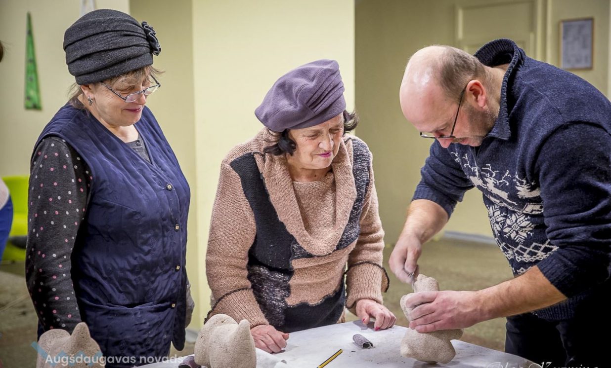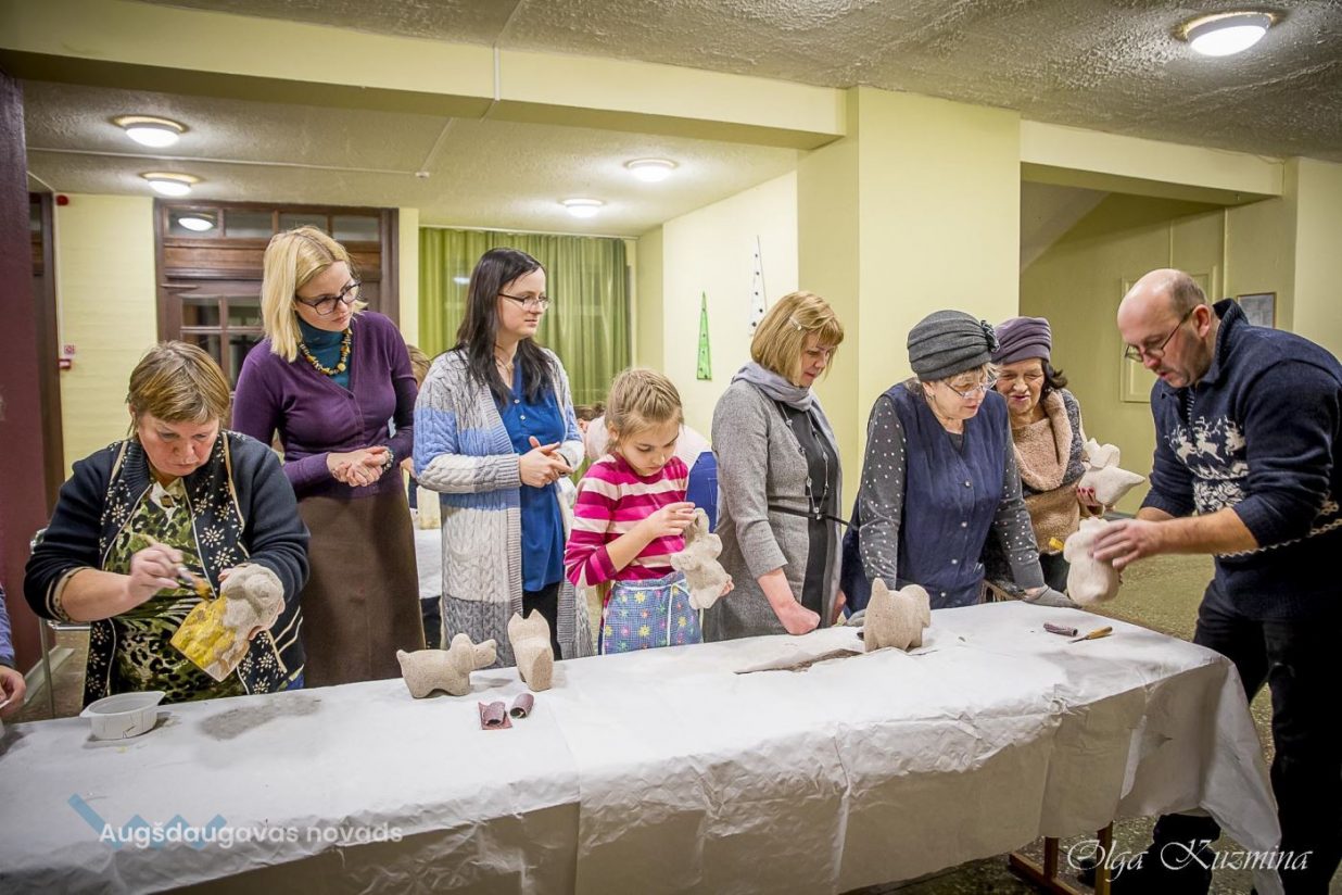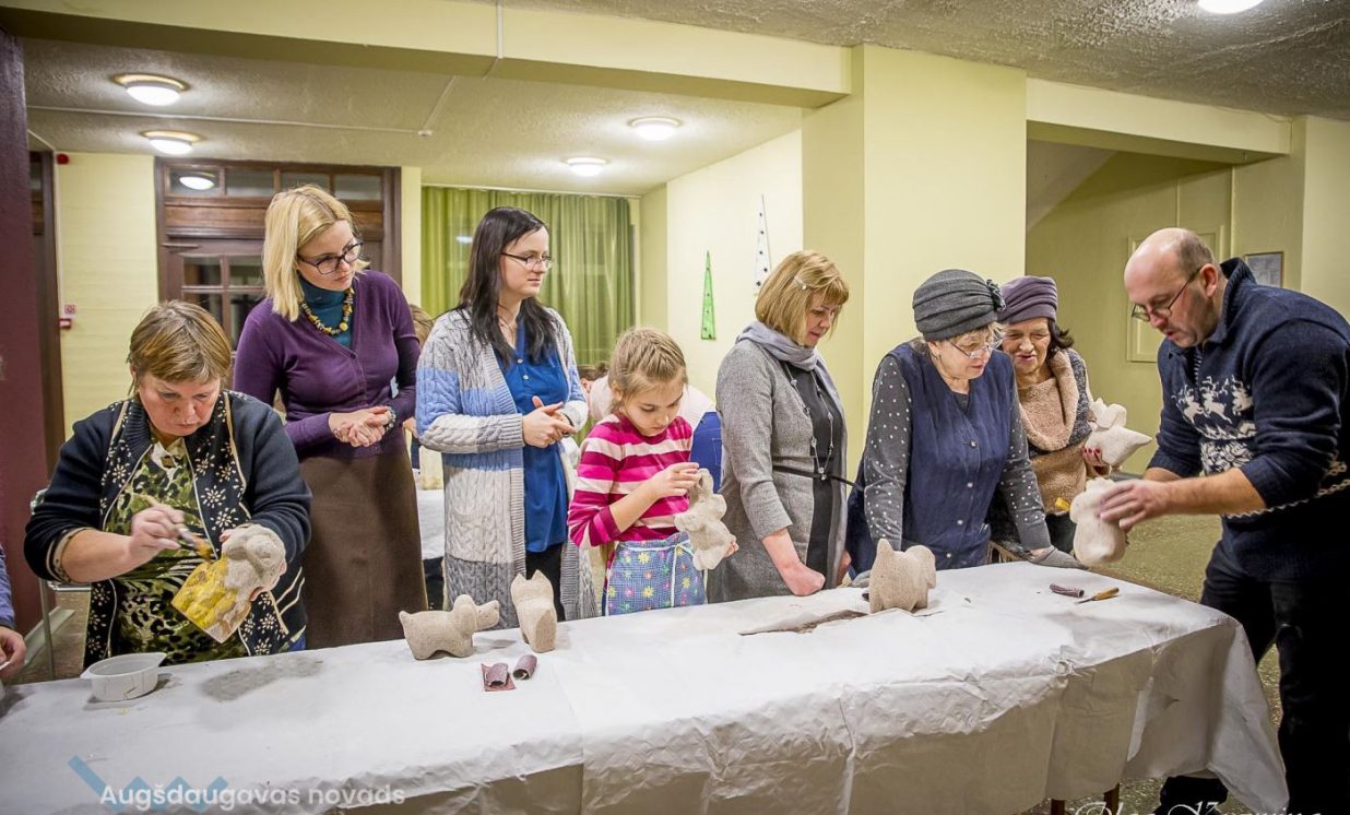 25. janvāra vakarā Naujenes kultūras centrs pārvērtās par gāzbetona mākslas studiju, kas pievilināja teju 20 amatiermāksliniekus, kas ar nepacietību gaidīja savus gāzbetona suņukus, kurus amatu meistars Valdis Grebežs rūpīgi gatavoja adopcijai.