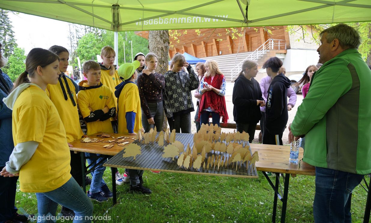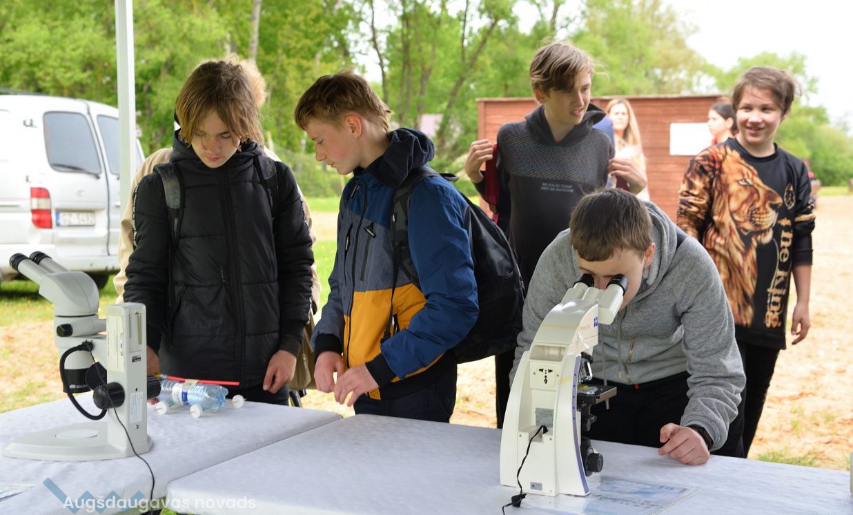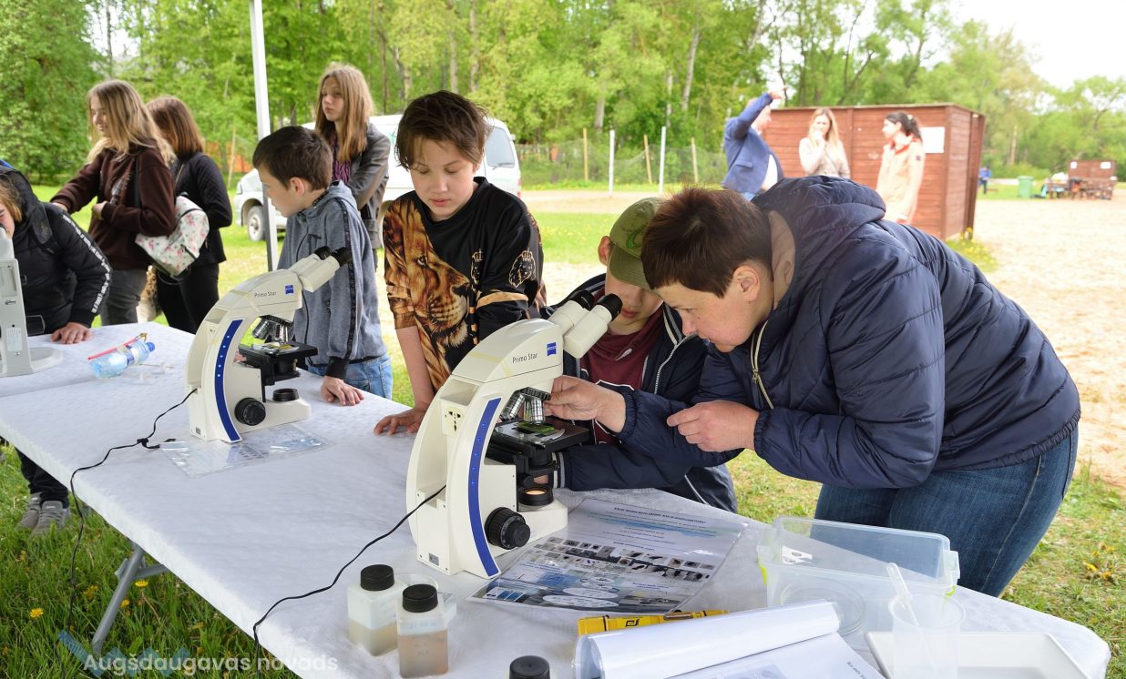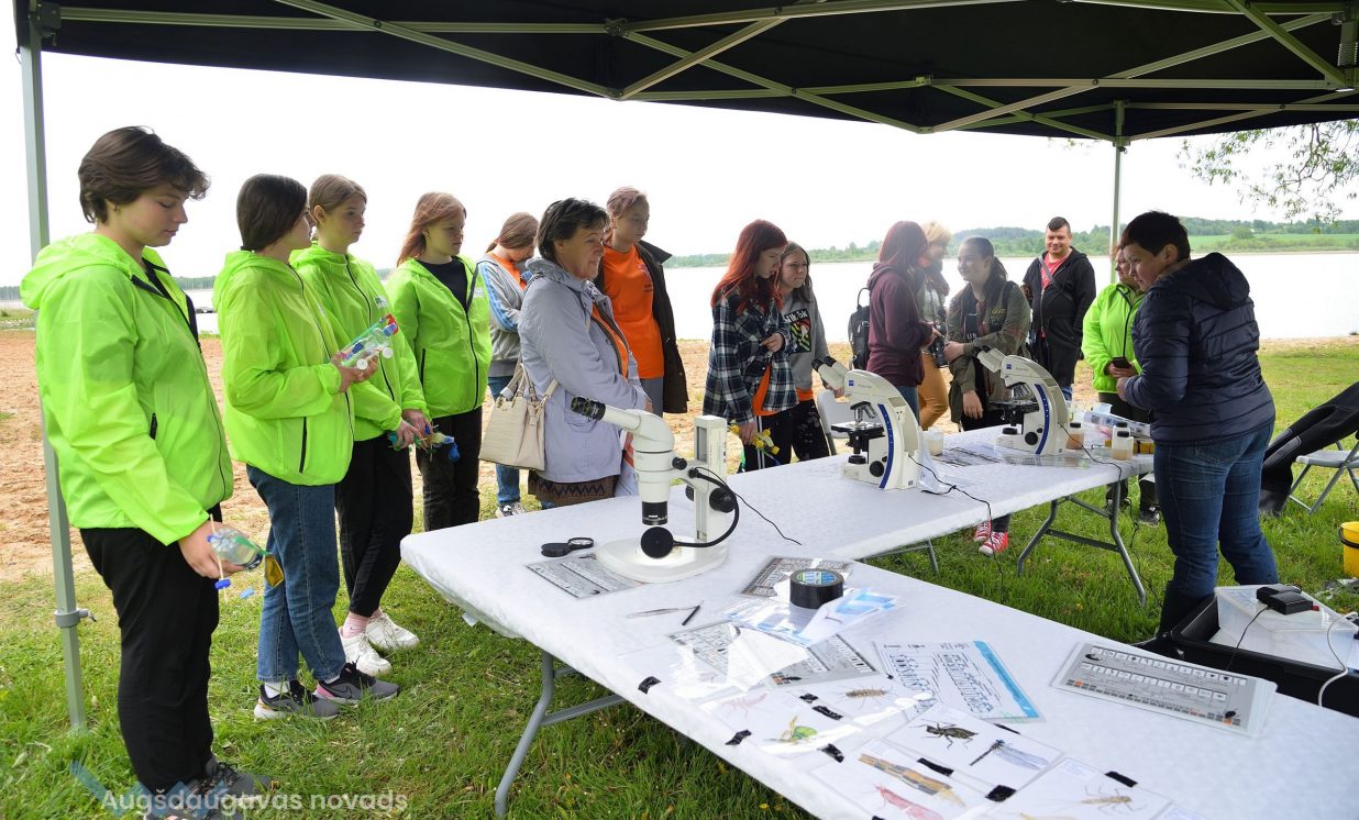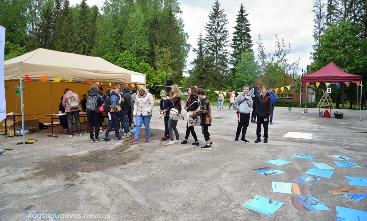 In the workshop of the Latvia’s State Forests, young people got to know about the diversity of forests, as well as learned how to plant conifers. Daugavpils University introduced the world of water and offered to study the organisms living in water with microscopes. The Natural Resources Department of Augšdaugava Municipality invited young people to put together a large puzzle and get to know about protected natural areas and natural values of the region.