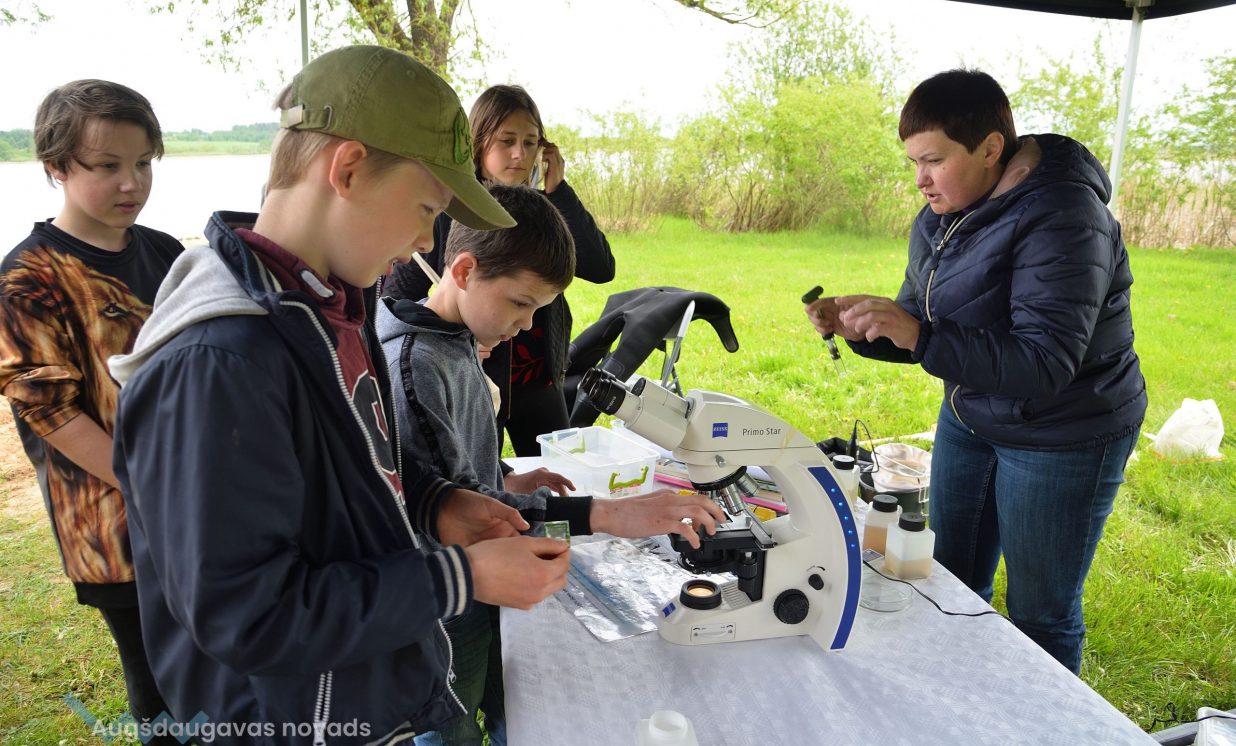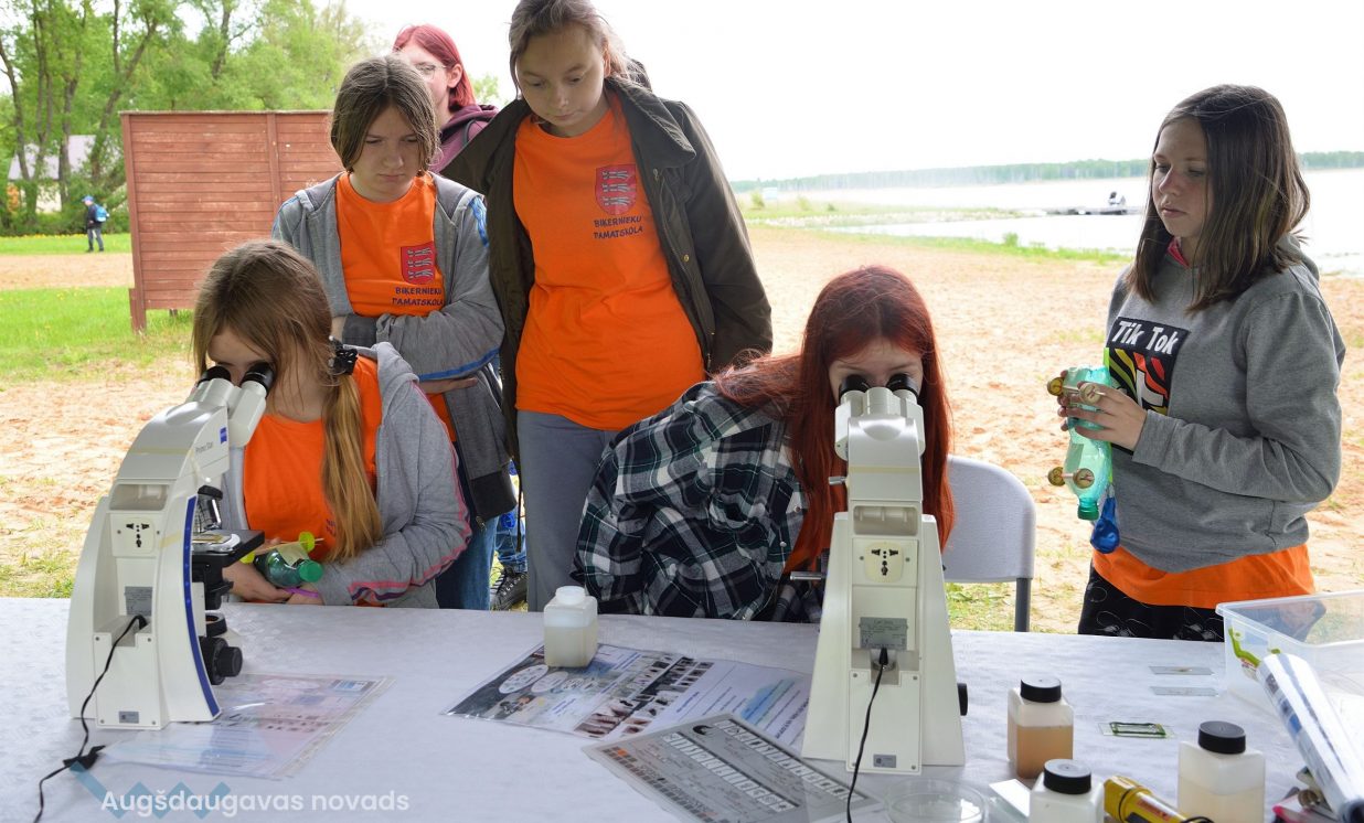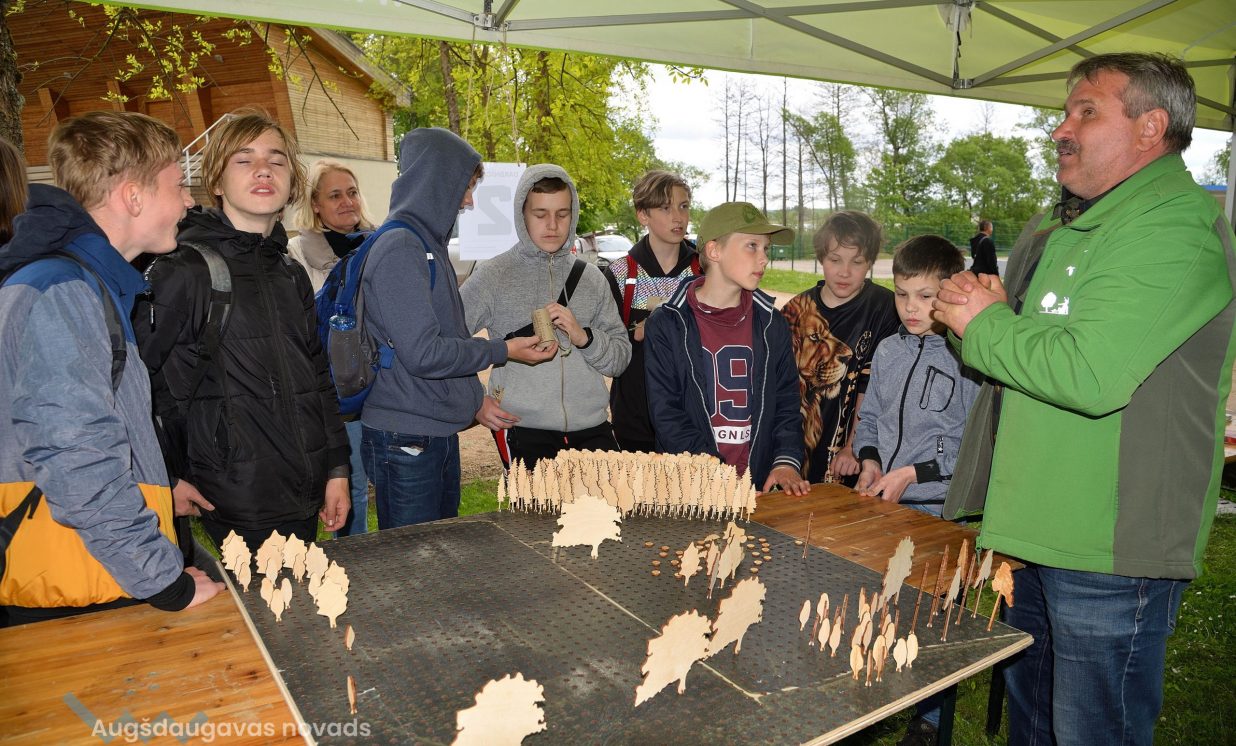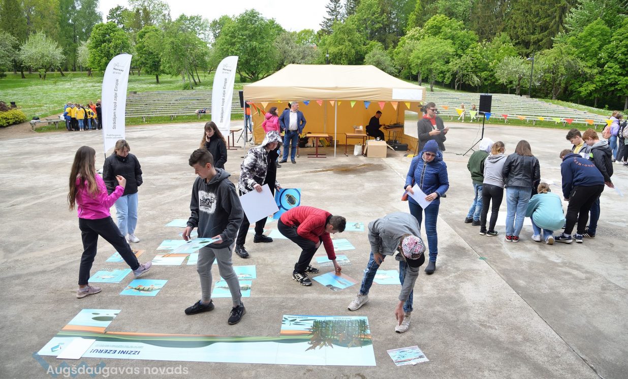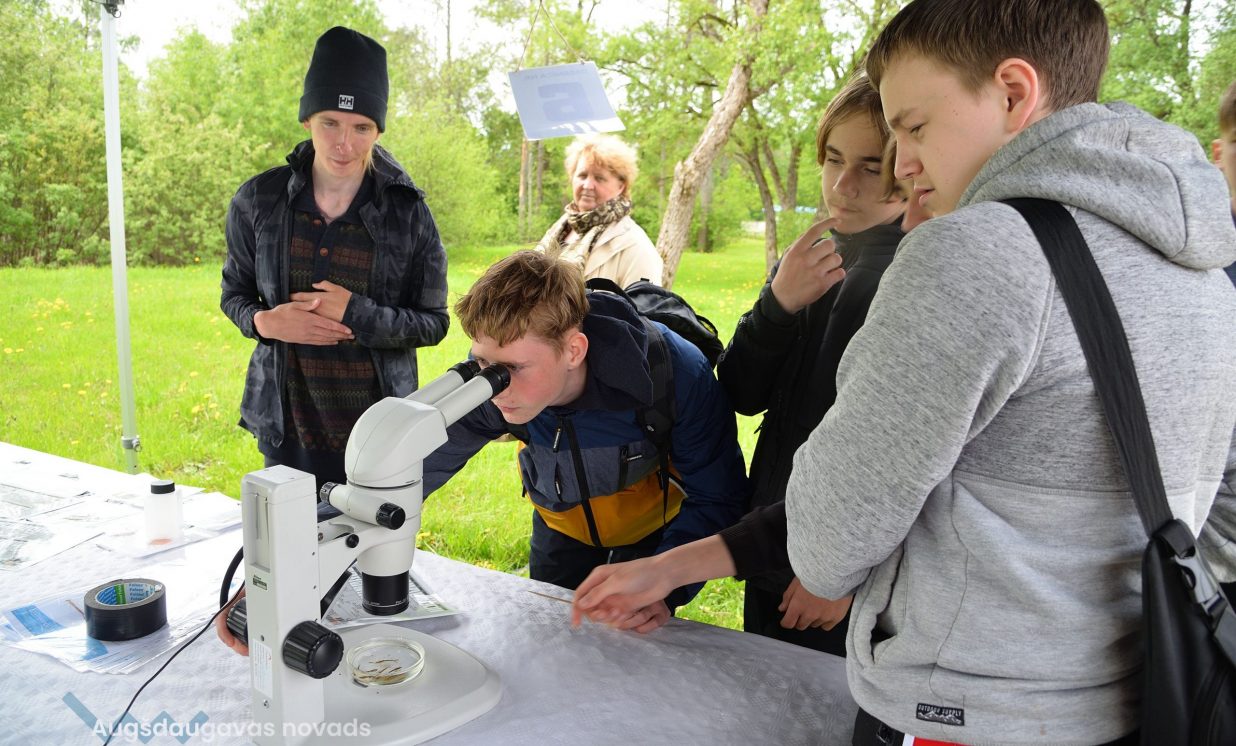 In the workshop of the Latvia’s State Forests, young people got to know about the diversity of forests, as well as learned how to plant conifers. Daugavpils University introduced the world of water and offered to study the organisms living in water with microscopes. The Natural Resources Department of Augšdaugava Municipality invited young people to put together a large puzzle and get to know about protected natural areas and natural values of the region.