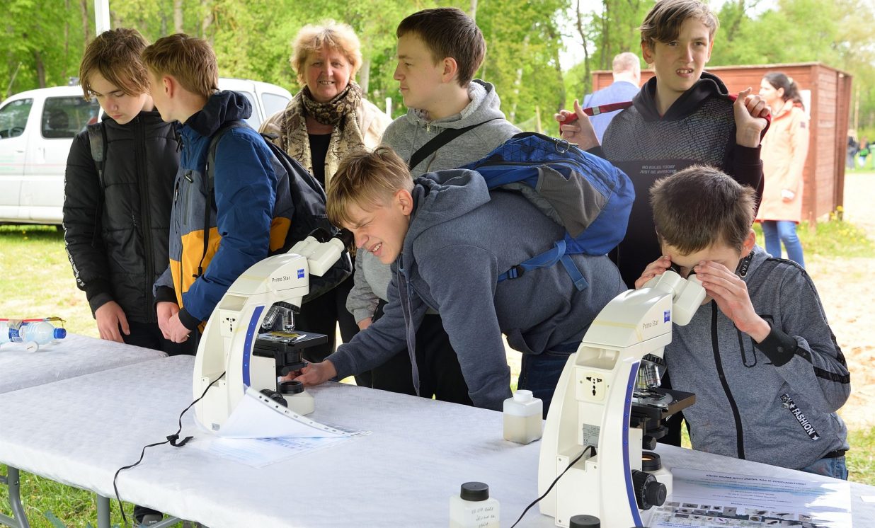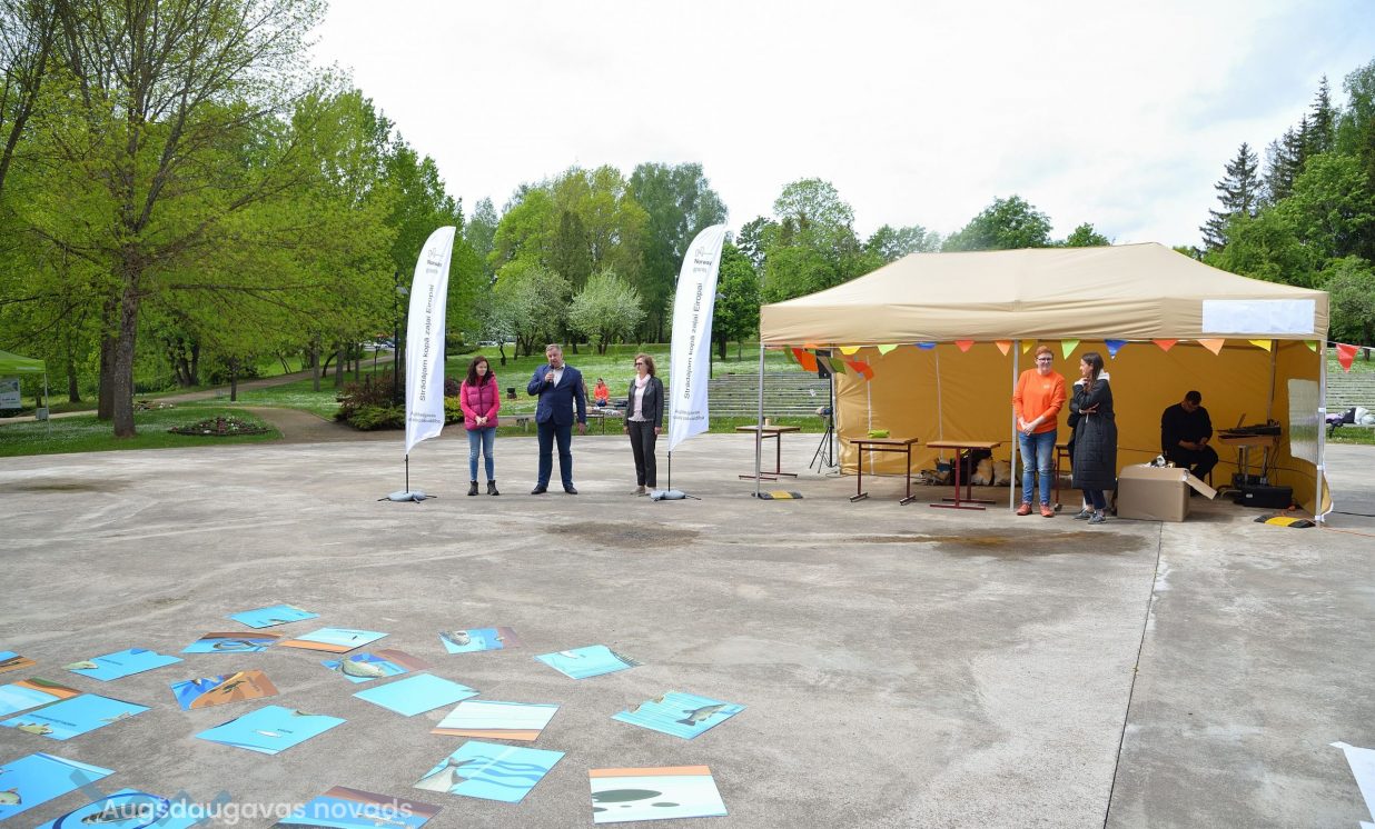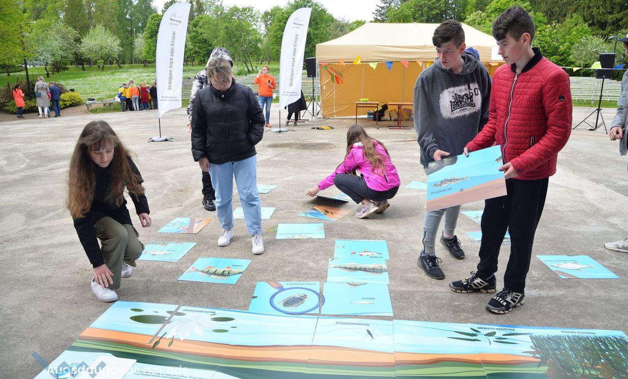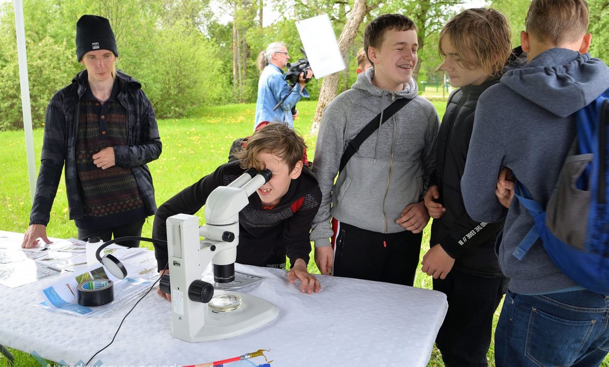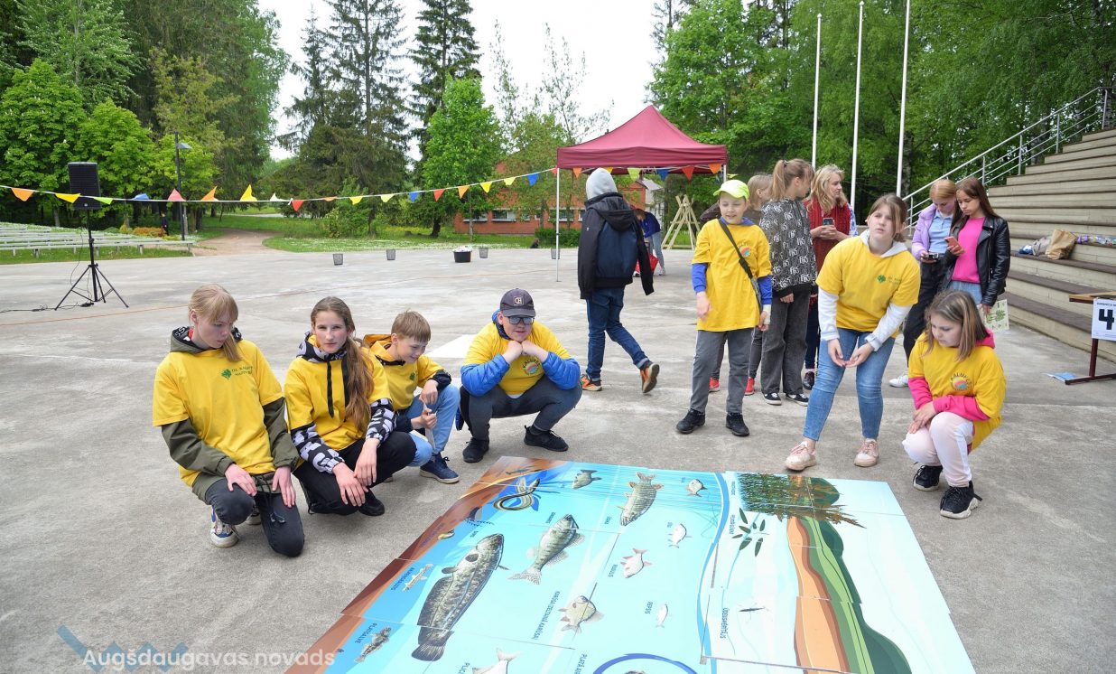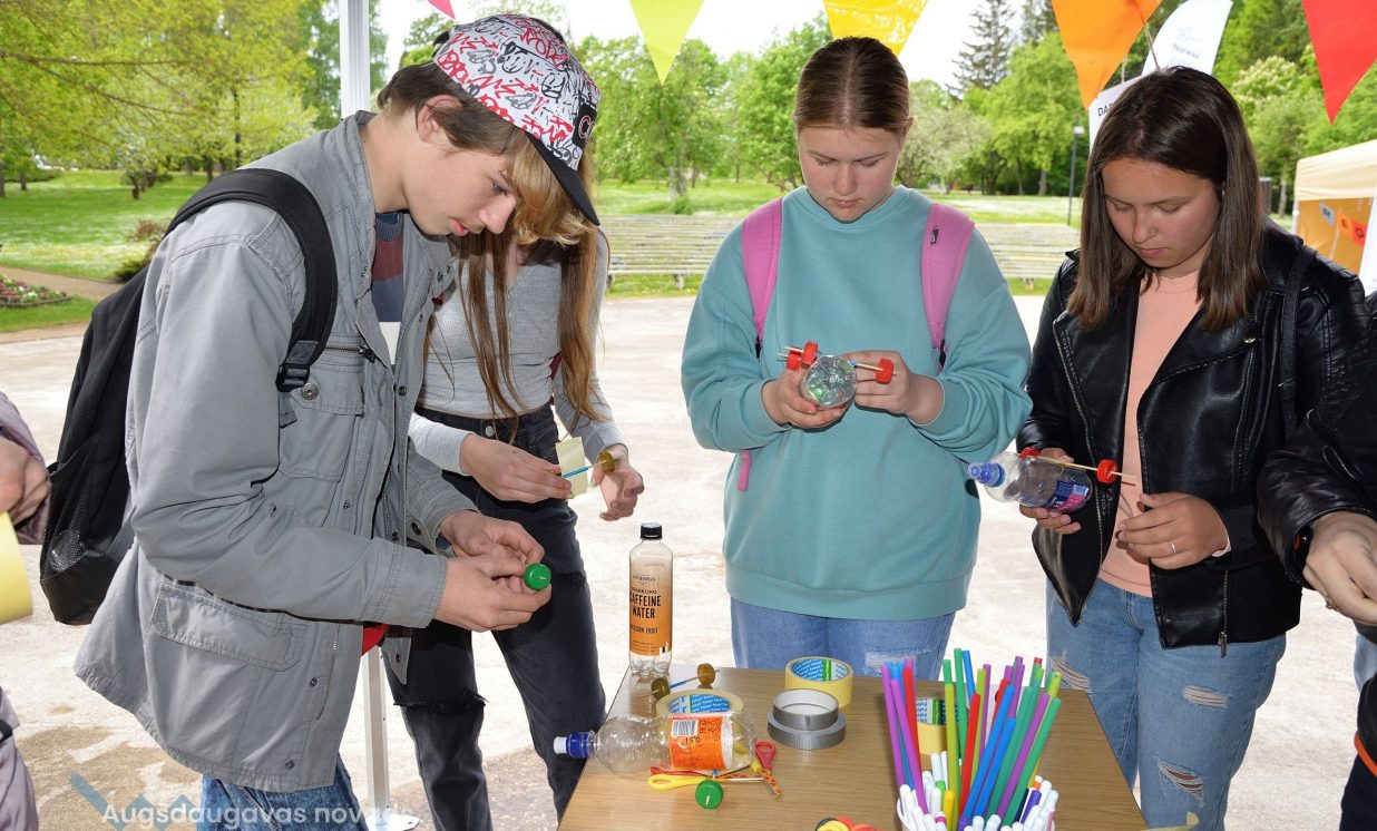 In the workshop of the Latvia’s State Forests, young people got to know about the diversity of forests, as well as learned how to plant conifers. Daugavpils University introduced the world of water and offered to study the organisms living in water with microscopes. The Natural Resources Department of Augšdaugava Municipality invited young people to put together a large puzzle and get to know about protected natural areas and natural values of the region.
