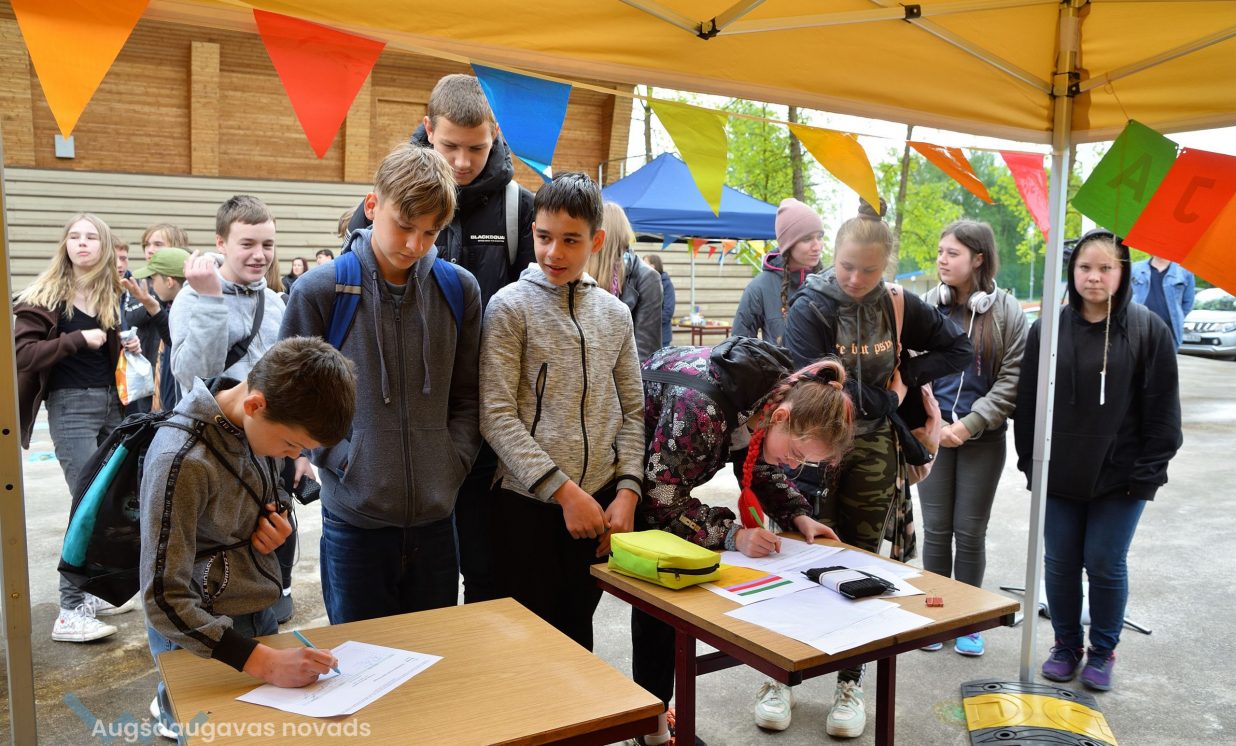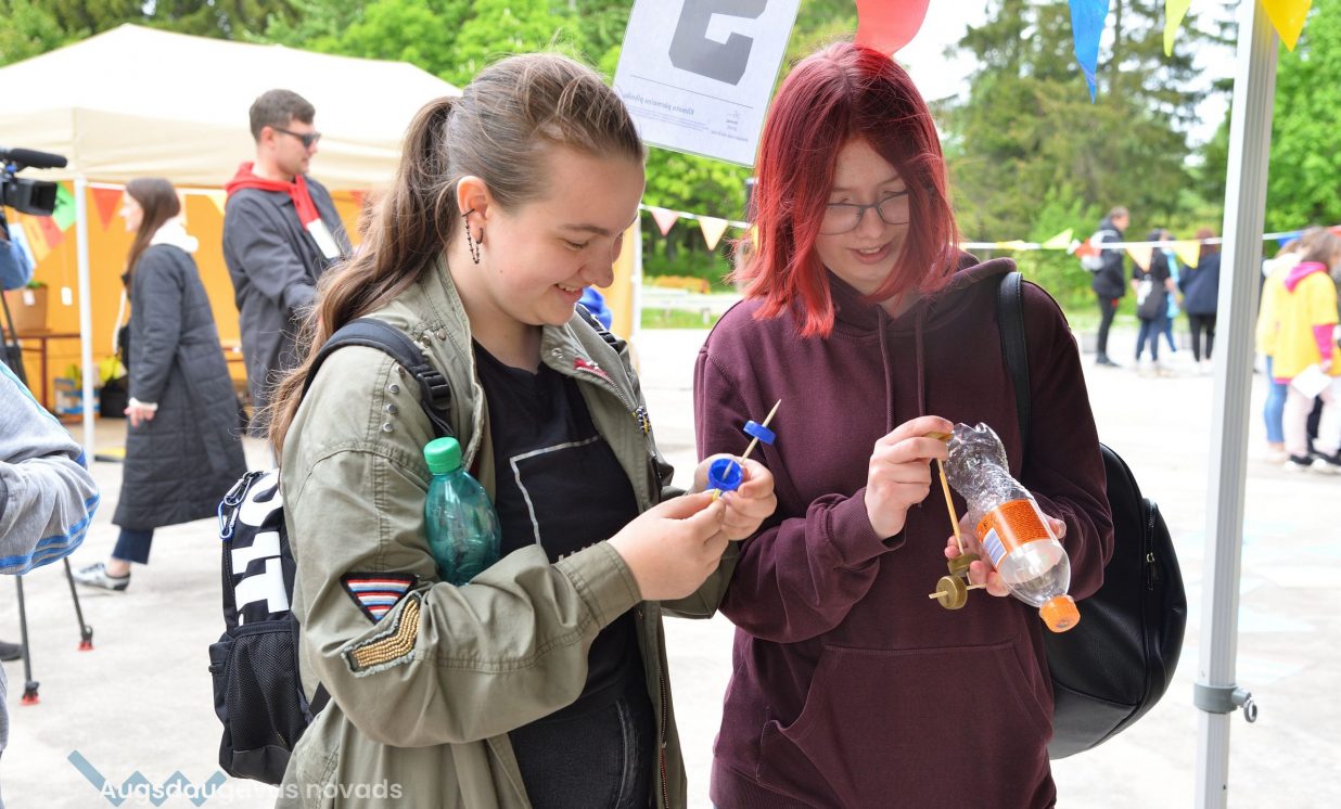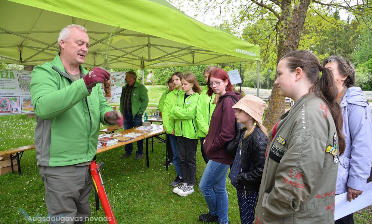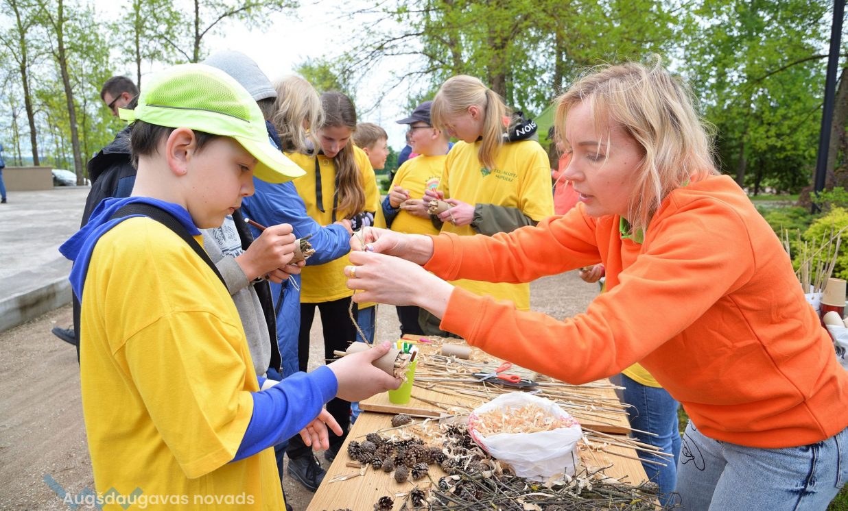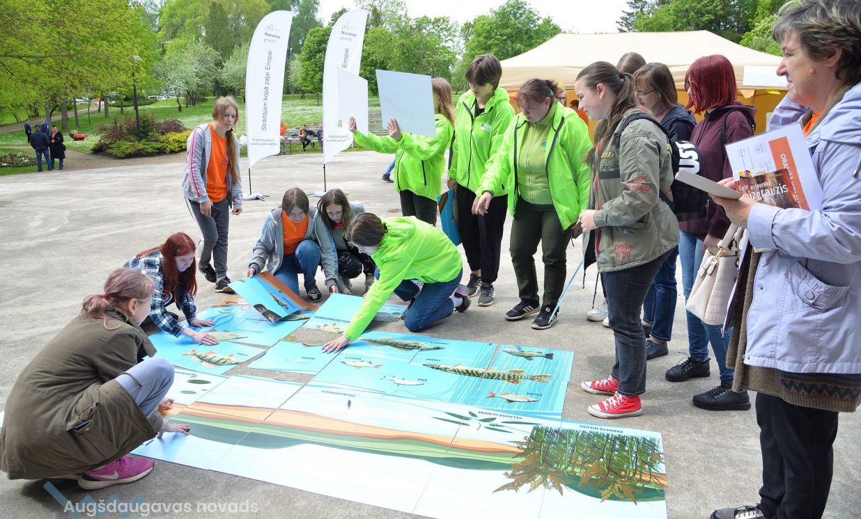 In the workshop of the Latvia’s State Forests, young people got to know about the diversity of forests, as well as learned how to plant conifers. Daugavpils University introduced the world of water and offered to study the organisms living in water with microscopes. The Natural Resources Department of Augšdaugava Municipality invited young people to put together a large puzzle and get to know about protected natural areas and natural values of the region.