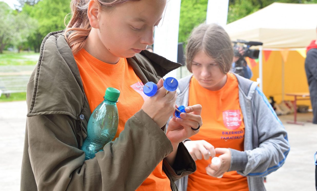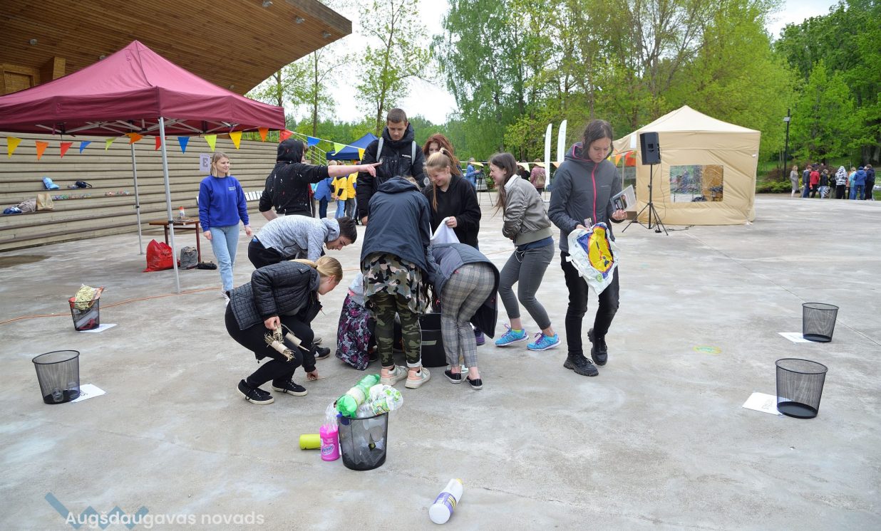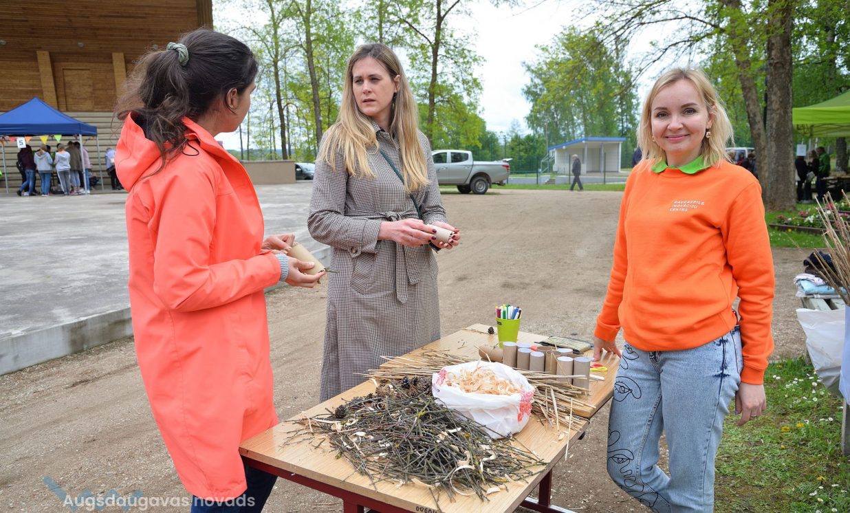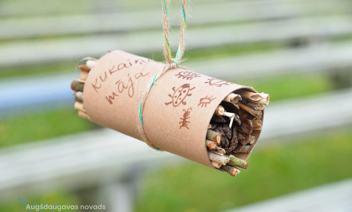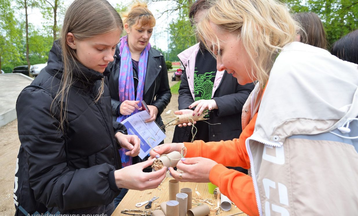 Young people were invited to bring old jeans, PET bottle caps, PET bottles, toilet paper or paper towel rolls, which were provided in large quantities- was used in the creative workshops organized by Daugavpils Innovation Center, educating pupils how to sort waste and reuse it, for example, making toys from PET bottles and making insect houses from toilet paper rolls and natural materials.