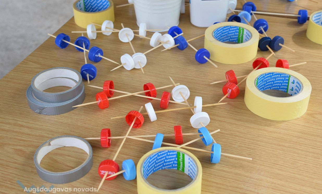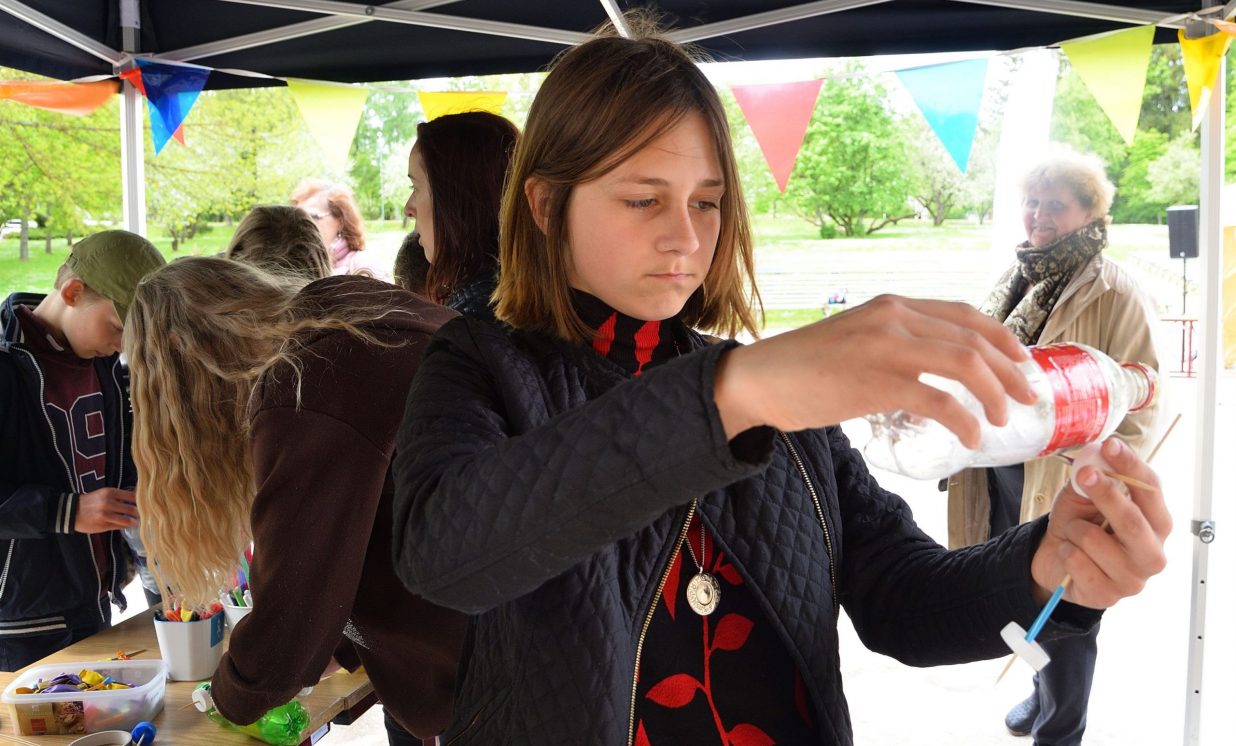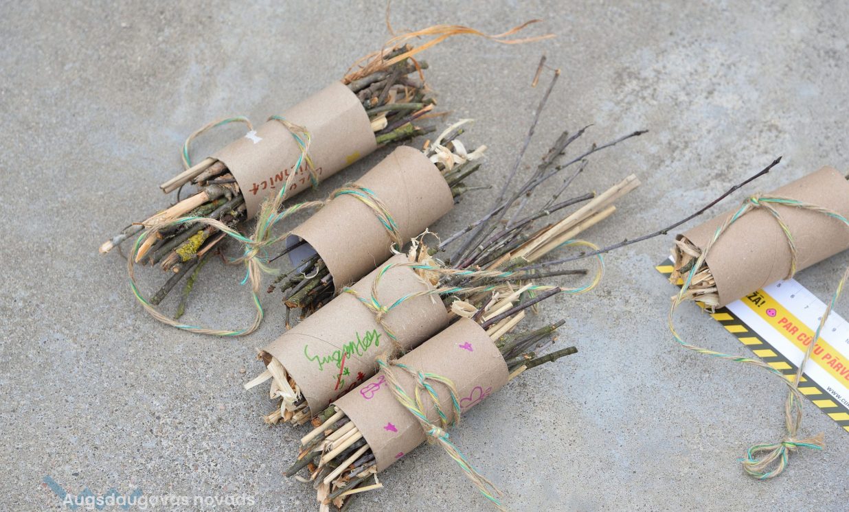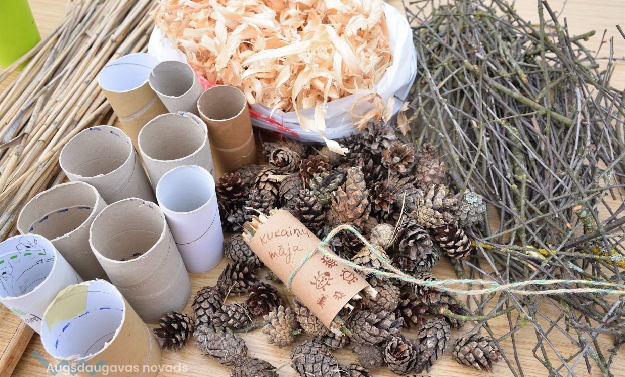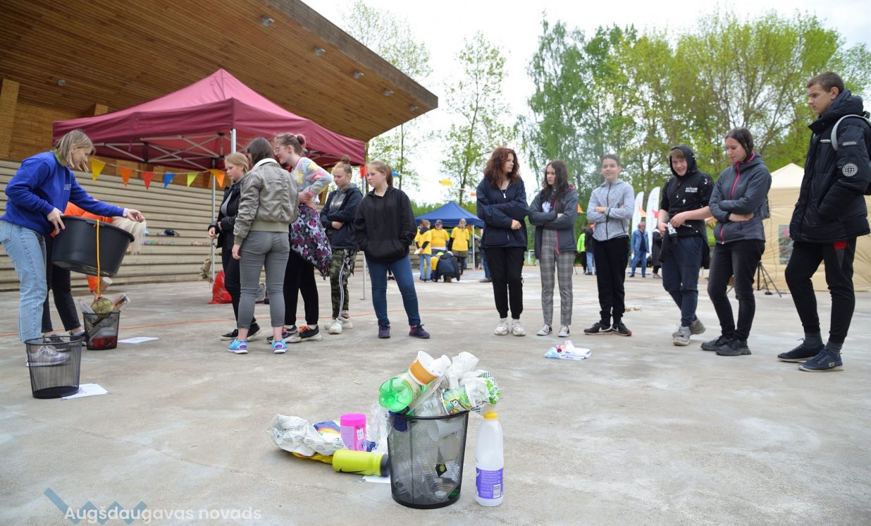 Young people were invited to bring old jeans, PET bottle caps, PET bottles, toilet paper or paper towel rolls, which were provided in large quantities- was used in the creative workshops organized by Daugavpils Innovation Center, educating pupils how to sort waste and reuse it, for example, making toys from PET bottles and making insect houses from toilet paper rolls and natural materials.