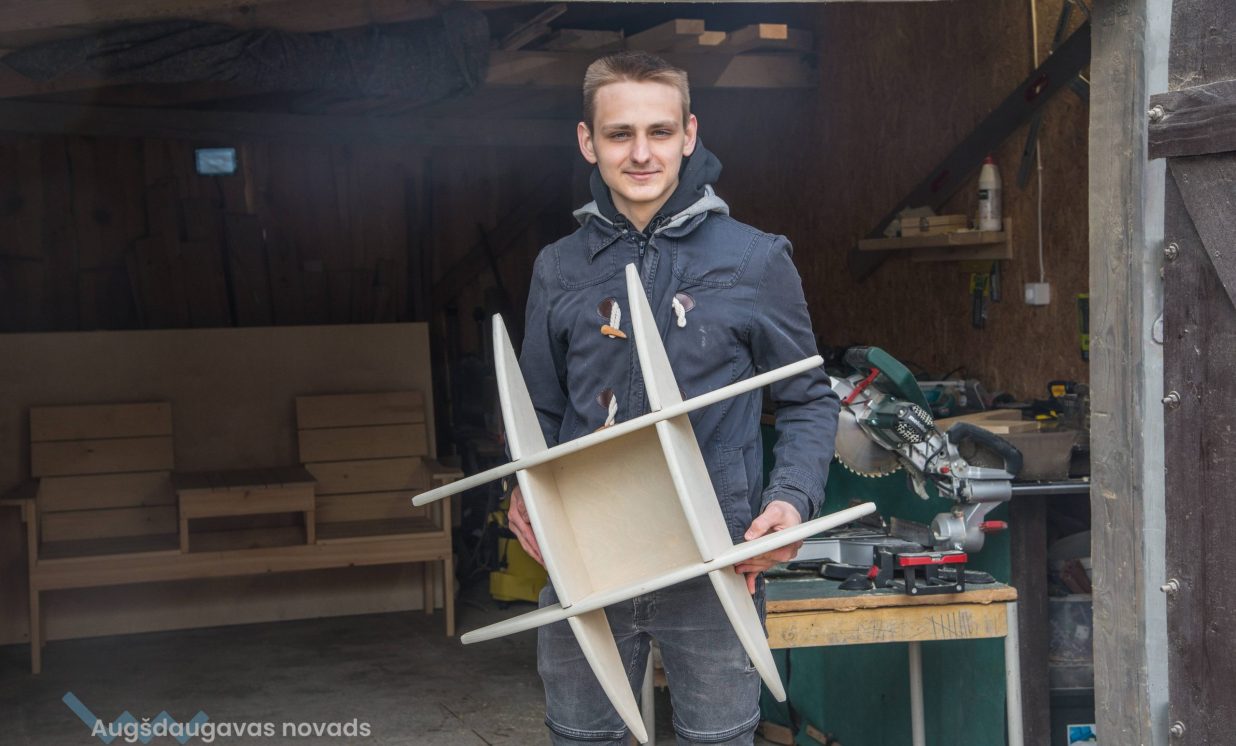 Lielākais pieprasījums ir pēc dažādiem soliem un galdiem. Saules skolā Egils apgūst kokapstrādes dizainu, kur var vairāk iemācīties veidot smalkus darbus, izmantojot kaltiņu. Studijas Saules skolā ilgst četrus gadus, divus kursus Egils jau pabeidzis. Puisis arī cer, ka skolā viņam iemācīs darboties ar CNC iekārtu, kas tiks iegādāta par Daugavpils novada Grantu konkursā iegūto finansējumu. Darbojoties ar šo iekārtu, kas paver plašas iespējas, ir jāapgūst dažādas programmas, un vairāk jāmodelē pašā datorā. Galu galā ar moderno frēzi iespējams ražot daudz sarežģītākus priekšmetus, piemēram, bērnu mēbeles, galdus un krēslus, un kopumā iespējas ražot ir ļoti plašas, galvenais ir izdomāt pašu ideju realizācijai. Ļoti daudz ideju varot atrast internetā, taču Egilam patīk modelēt arī pašam – jāuzzīmē rasējumi, tad jāsagatavo šabloni. Lielākoties Egila mēbeles tiek krāsotas, jo daudzas no tām ir domātas lietošanai ārā. Kopumā mēbeles tiek gatavotas atbilstoši pasūtītāja vēlmēm.