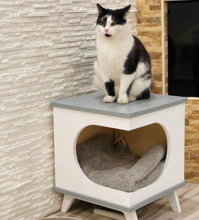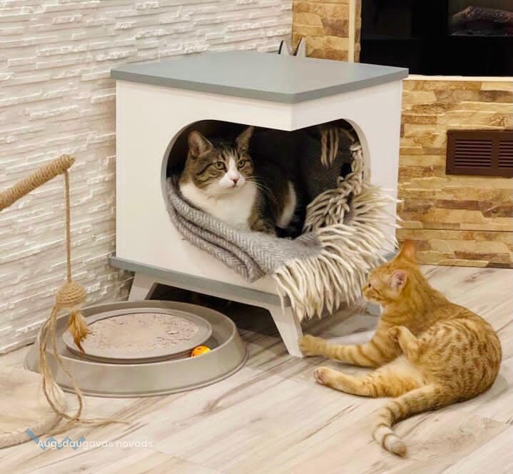 Jaunā uzņēmēja veidotās kaķu mēbeles un plaukts