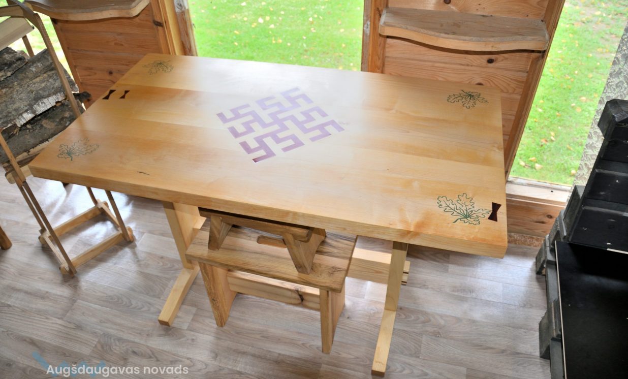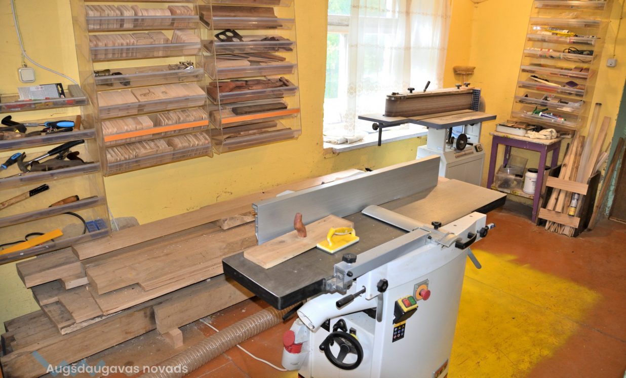 Izstrādājumus Aivars veido ar dažādiem instrumentiem – zāģiem, ēvelēm, slīpmašīnu u.c., bet agrāk vienīgais instruments bija frēzēšanas darbgalds, uz kura tika apgūtas nepieciešamās iemaņas. “Šis datorvadāmais frēzēšanas galds ir universāls, ar to var veidot visu.”