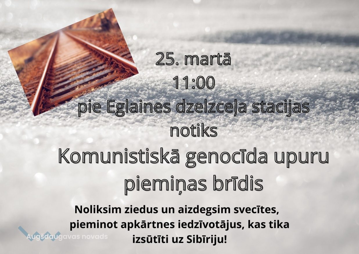 25. martā plkst. 11.00 pie Eglaines dzelzceļa stacijas notiks Komunistiskā genocīda upuru piemiņas brīdis.
