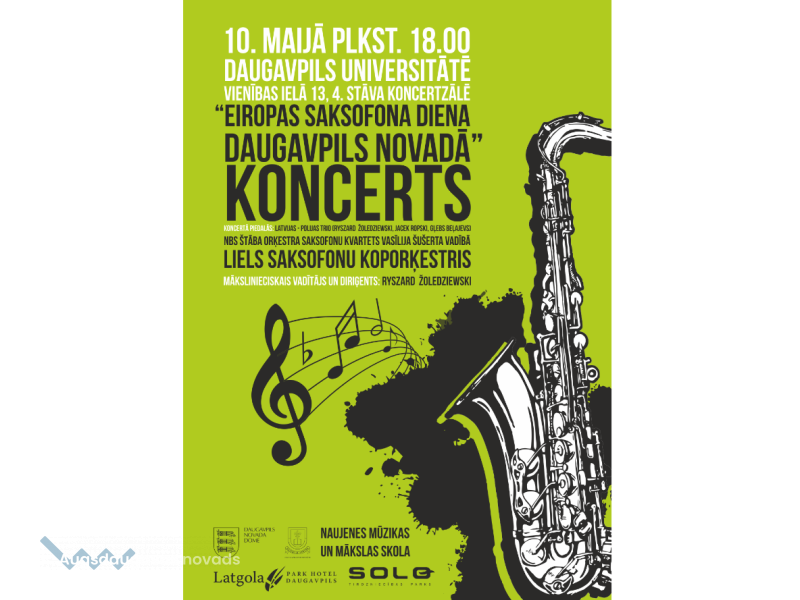 Koncerts “Eiropas saksofona diena Daugavpils novadā”02.05.2019AKTUĀLI 10. maijā plkst. 18.00 Daugavpils Universitātes koncertzālē (Vienības ielā 13, Daugavpils) izskanēs koncerts "Eiropas saksofona diena Daugavpils novadā".