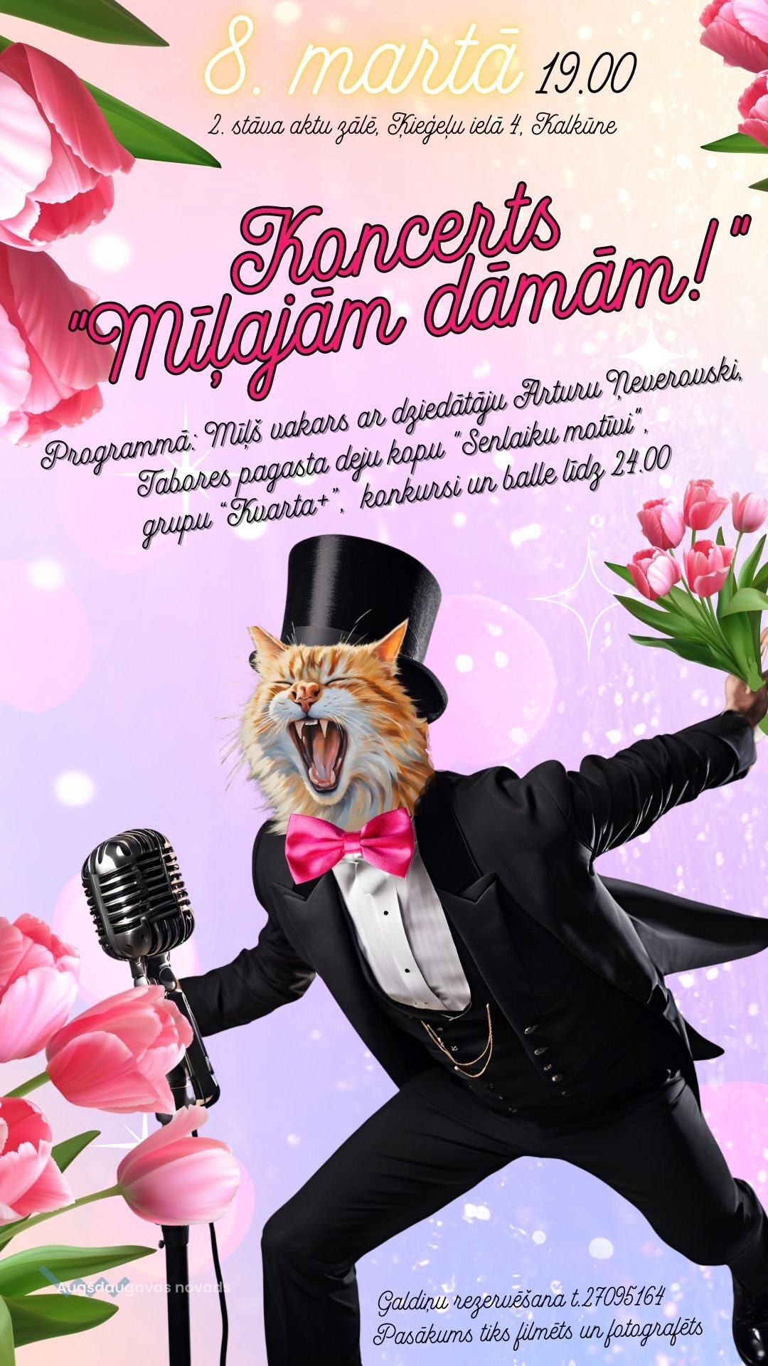 Aicinām uz īpašu koncertu "Mīļajām dāmām!" 8. martā, plkst. 19.00, Kalkūnē (2. stāva aktu zālē, Ķieģeļu ielā 4)