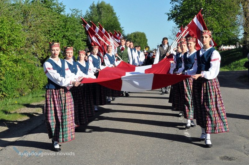 Svētki iesākās ar svētbrīdi Višķu Romas katoļu baznīcā, dejotājiem rokās nesot sarkanbaltsarkanos karogus, tādā veidā radot īpašu un patriotisku noskaņu. Pēc baznīcas dalībnieki vienojās kopīgā svētku gājienā, līdz pasākuma krāšņākās norises vietai ejot Naujenes Mūzikas un mākslas skolas pūšamo instrumentu orķestra pavadībā.