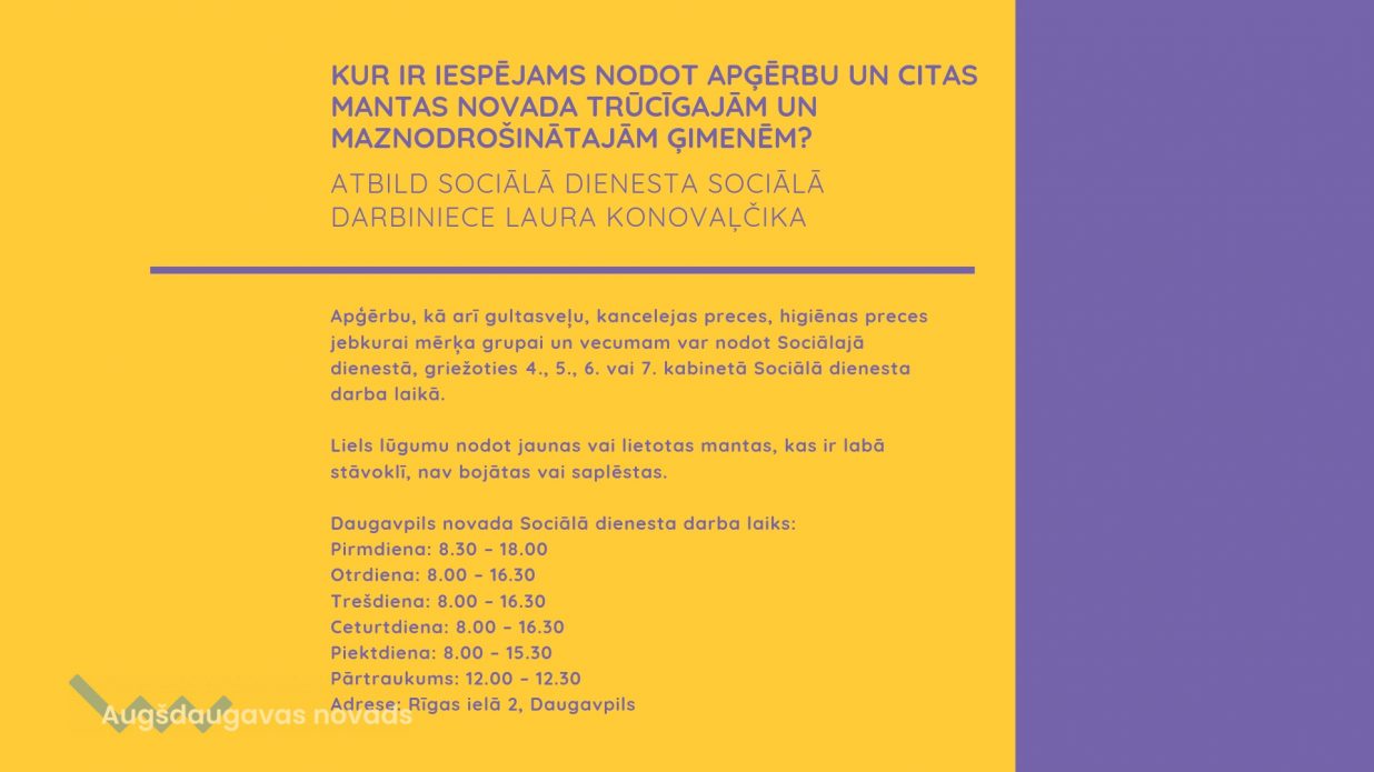 Kur ir iespējams nodot apģērbu un citas mantas novada trūcīgajām ģimenēm?05.03.2019Pagastu un pilsētu ziņas
