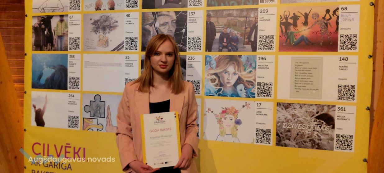 Konkursa mērķis bija aicināt jauniešus aizdomāties par to, kas veido iekļaujošu sabiedrību, un mudināt saskatīt un izprast līdzās esošo cilvēku dažādību – viņu vērtību, tiesības uz laimi, cieņu un līdzvērtīgu dzīvi. Tika iesniegti 369 oriģināli un interesanti darbi. Konkursā ar savu zīmējumu piedalījās Sventes vidusskolas 12. klases skolniece Angelīna Minkeviča. Angelīna izvēlējās zīmēt par tēmu “Cilvēki ar garīga rakstura traucējumiem”. Angelīnas darbu augstu novērtēja žūrija. Skolniece šajā konkursā saņēma atzinības rakstu no Labklājības ministrijas.