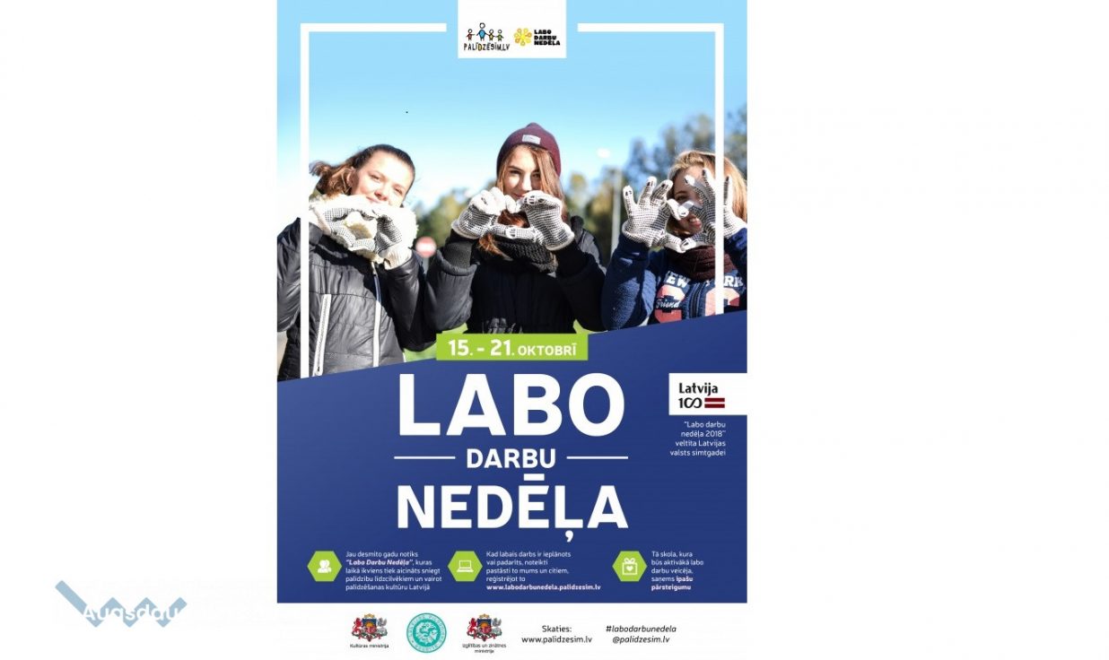 Jau desmito gadu labdarības organizācijas Palīdzēsim.lv rīkotajā akcijā “Labo darbu nedēļa” – labo darbu veikšanā aicināti aktīvi iesaistīties gan paši mazākie, gan jau pieredzējuši labo darbu veicēji, mudinot aizdomāties par katru vissīkāko darbiņu, kas citu spēj padarīt priecīgāku un atvieglo ikdienas dzīvi, kas otram nozīmē tik daudz, bet Tev pašam tik pāris mirkļu palīdzīgas rokas sniegšanas un gandarījumu par padarīto.
