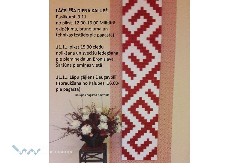 Militārā ekipējuma, bruņojuma un tehnikas izstāde 9.11. no plkst. 12.00-16.00 (pie pagasta) (no plkst. 14.00-15.00 mielošanās ar karavīru biezputru pie ugunskura).