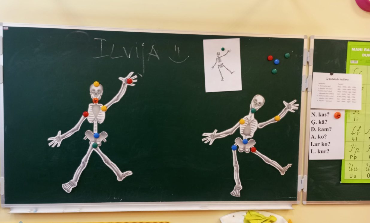 Tad arī mazliet izpētījām skeleta sastāvdaļas enciklopēdijā un izmantojām jaunās zināšanas spēlē!