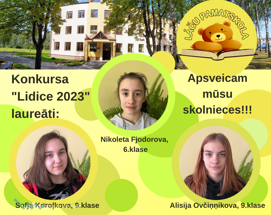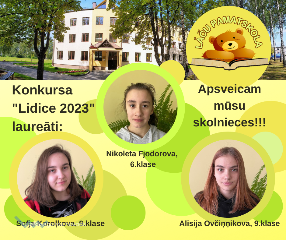 Līdz šim kāds no mūsu skolēniem vienmēr kļuva par šī konkursa laureātu, bet šogad man ir īpašs prieks, jo šoreiz mums ir veseli trīs laureāti! Es ļoti lepojos ar manām skolniecēm - Nikoletu Fjodorovu (6.kl.), Alisiju Ovčiņņikovu (9.kl.) un Sofju Koroļkovu (9.kl.)! Kopā uz konkursu tika atsūtīti 1174 darbi no visas Latvijas, tālāk ceļam uz 51. Starptautisko bērnu mākslas izstādi Čehijā, tika izvirzīti 126 mākslas darbi (tajā skaitā arī mūsu skolnieces darbi). Sirsnīgs paldies skolniecēm par atsaucību, radošumu, neatlaidību un dalību konkursā Lidice – 2023 Latvijas kārtā! 51. Starptautiskā bērnu mākslas konkursa Lidice 2023 Latvijas kārtas laureātu darbu digitālo katalogu var apskatīt šeit.