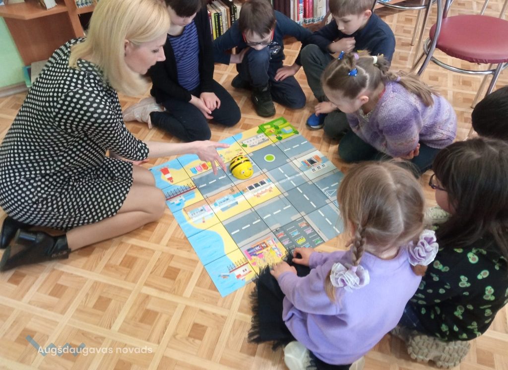 Bibliotekāre novadīja ekskursiju pa bibliotēku. Ekskursijas laikā bērni iepazinās ar lasītavu, abonementu, bērnu nodaļu. Bibliotekāre pastāstīja bērniem, ka katrai grāmatai ir sava vieta grāmatu plauktā, kādā veidā tiek izvietotas grāmatas bibliotēkā. Bibliotekāre Jeļena Višņakova apkalpoja lasītāju, un bērni varēja novērot, kā notiek grāmatu nodošana un izsniegšana.