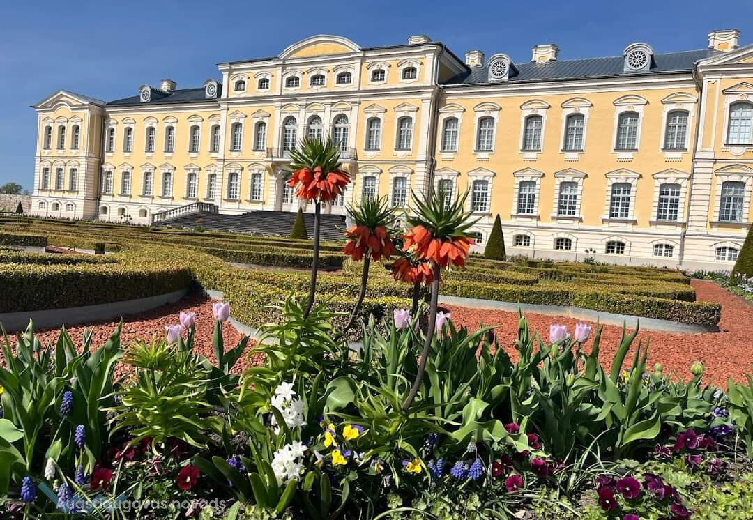 Diena turpinājās ar Rundāles pils apmeklējumu. Kopā ar gidiem skolēni apmeklēja un ieraudzīja visas krāšņas pils telpas, padziļināja savas zināšanas par baroka laikmetu un vēsturiskajiem notikumiem Zemgalē. Ekskursija turpinājās pils skaistajā franču dārzā. Parks pārsteidza mūs ar tulpēm un narcisēm (rozes ziedēs tikai jūnijā), bet parka iekārtojums vienalga ir grandiozs.