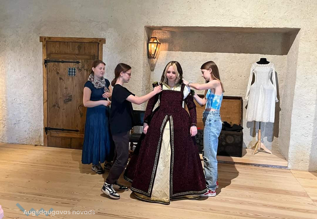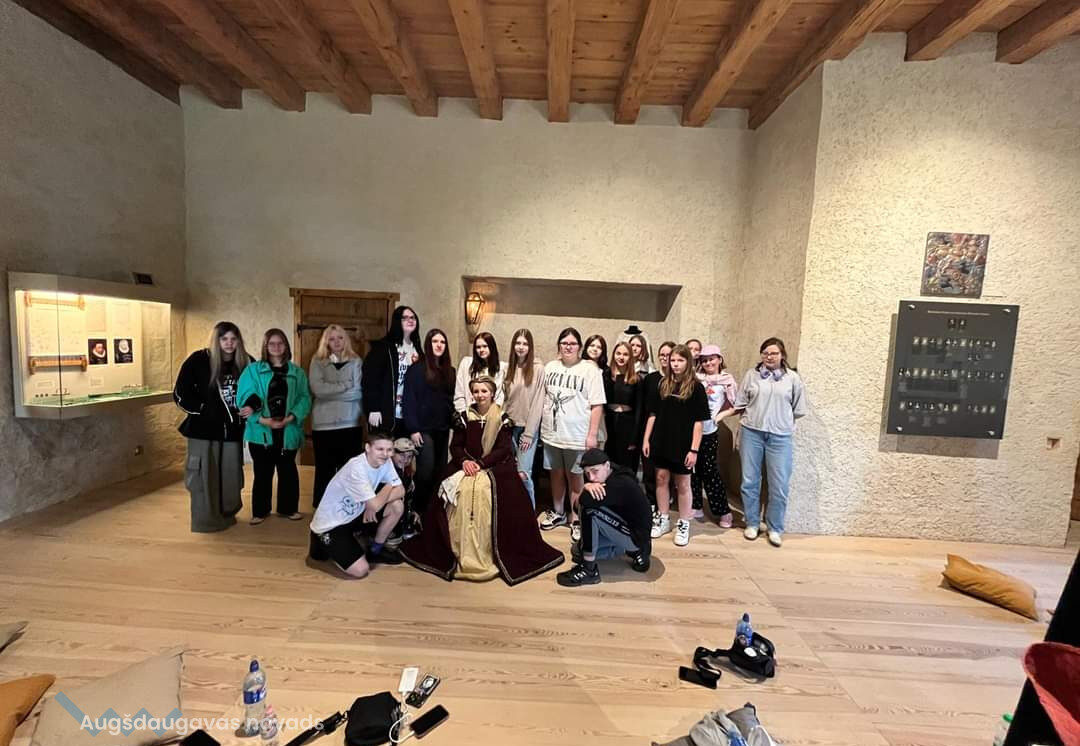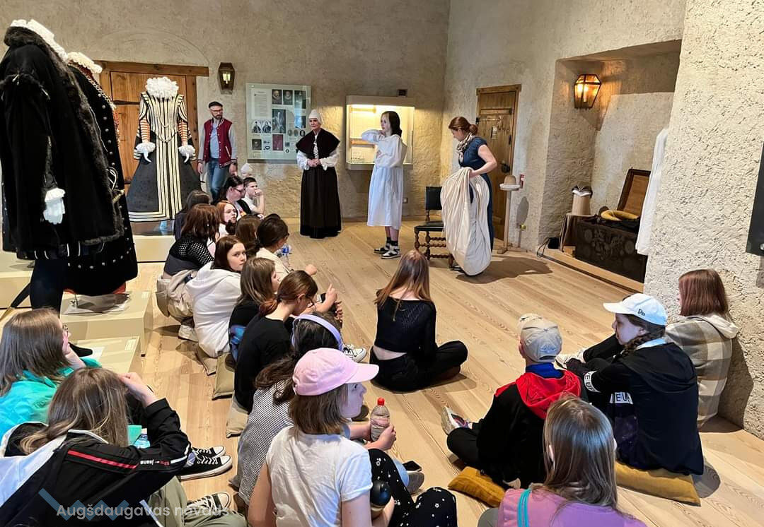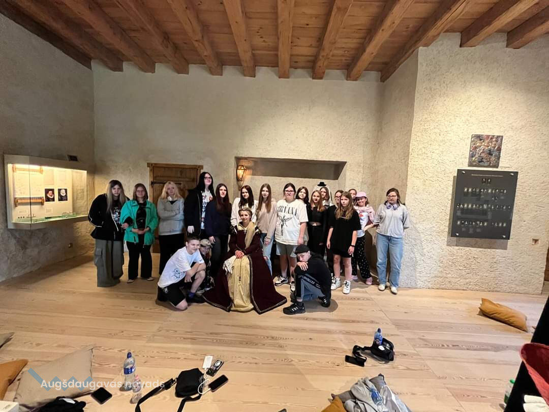 Vispirms mēs apmeklējam Bausku. Bauskas pils celta Mūsas un Mēmeles satekas vietā - šaurā, klinšu norobežotā pussalā. Šo seno pili kādreiz aizsargāja dziļš grāvis ar paceļamo tiltu. Ar lielo interesi skolēni iepazinās ar muzeja telpām, apskatīja rekonstruēto torni, kā arī apmeklēja 2 interaktīvas nodarbības. 8. un 7. klašu audzēkņi apmeklēja nodarbību “Ģērbšanās kultūra Kurzemes hercogistes galmā”. Viena no skolniecēm pat pielaikoja renesanses laika tērpu, bet pārējie palīdzēja viņai šo tērpu uzvilkt. Savukārt 9. klases skolēni uzzināja kā renesanses laikā izklaidējās bērni un pieaugušie. Viņi pamēģināja spēlēt dažādas galda spēles un apguva aizraujošas, senas rotaļas.