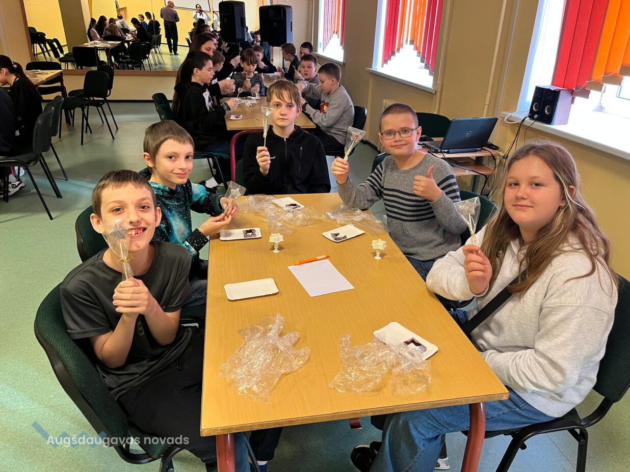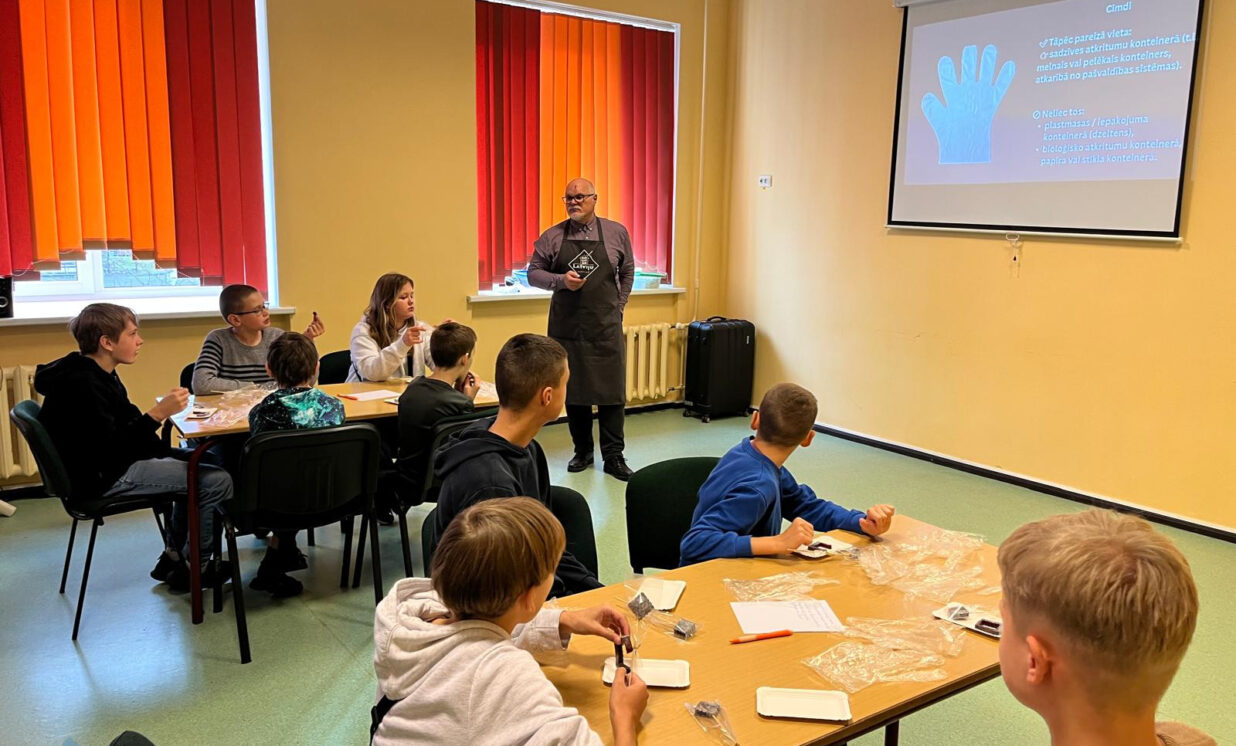 Savukārt 4.–6. klašu skolēni piedalījās nodarbībā “Atbildīgs bizness: No izaudzētā līdz ilgtspējīgam produktam”, kuras mērķis bija veicināt izpratni par ilgtspēju un pilsonisko atbildību. Sarunu un diskusiju laikā skolēni analizēja resursu patēriņu un atkritumu rašanos savā ikdienā, diskutēja par vietējās produkcijas nozīmi un uzņēmumu ietekmi uz vidi un kopienu. Izmantojot video un foto materiālus, skolēni iepazina pārtikas ražošanas ceļu – no izejvielu ieguves līdz gatavam produktam, kā arī uzņēmumu sadarbības nozīmi ar vietējiem zemniekiem. Īpašu interesi izraisīja jautājums: “Kas notiek ar augļiem un ogām pēc tam, kad no tām izspiesta sula – vai viss tiek izmests?” Tas kļuva par ievadu praktiskajai daļai, kurā skolēni pāru un grupu darbā kļuva par produktu attīstītājiem, meklējot radošus risinājumus, kā pārpalikumus pārvērst jaunā produktā. Tā dzima idejas, kā dot spiedpaliekām “otro dzīvi” un vienlaikus saudzēt vidi.