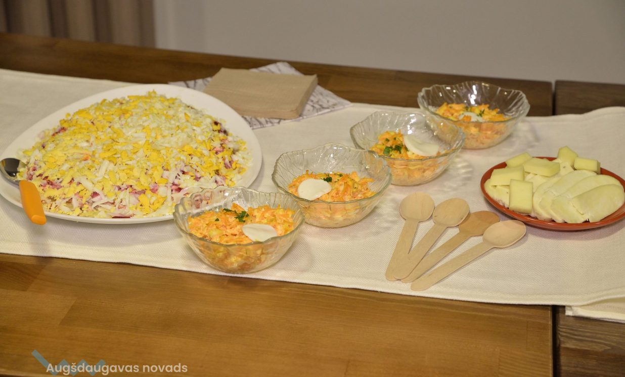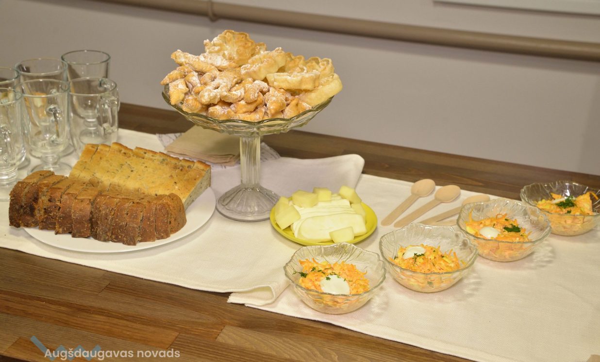 Savukārt Kulinārā mantojuma telpā visus gaidīja bagātīgi klāts galds, aicinot izbaudīt dažādus Latgales saimnieču gatavotos ēdienus, tostarp tradicionālo kartupeļu sacepumu jeb kuģeli, kas ir iecienīts ēdiens ikviena latgalieša mājā.