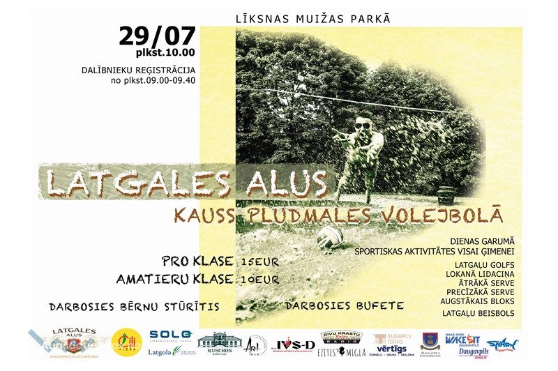 29.jūlijā Līksnas Muižas parkā sadarbībā ar Daugavpils novada Līksnas pagasta pārvaldi notiks Latgales alus kauss pludmales volejbolā gan Pro klasē, gan amatieru klasē. Dalībnieku reģistrācija sāksies jau no 9.00- 9.40. Dalības maksa Pro klasei 15 EUR, amatieru klasei- 10 EUR. Plkst. 10.00 pasākuma atklāšana. Plkst. 11.00 sākas sportiskās aktivitātes visai ģimenei, kā arī Latgaļu golfs, sacensības lokanākajā līdaciņā, ātrākajā servē, precīzākajā servē, augstākajā blokā, Latgaļu beisbolā u.c. Darbosies bērnu stūrītis un bufete. Vakarā, plkst. 22.00, Latgaļu Bīč Pārtijs divos deju plačos kopā ar DJ Gati un WII. Īpašie viesi grupa "Metrs"un īsta latgaliešu grupa "Gandrīz 10-nīkā". Atrakcijas un konkursus mēģinās novadīt MK un EV. Tas būs gandrīz bezmaksas pasāciens. Visi tiek gaidīti gan sportot, gan dejot, gan jauki atpūsties.