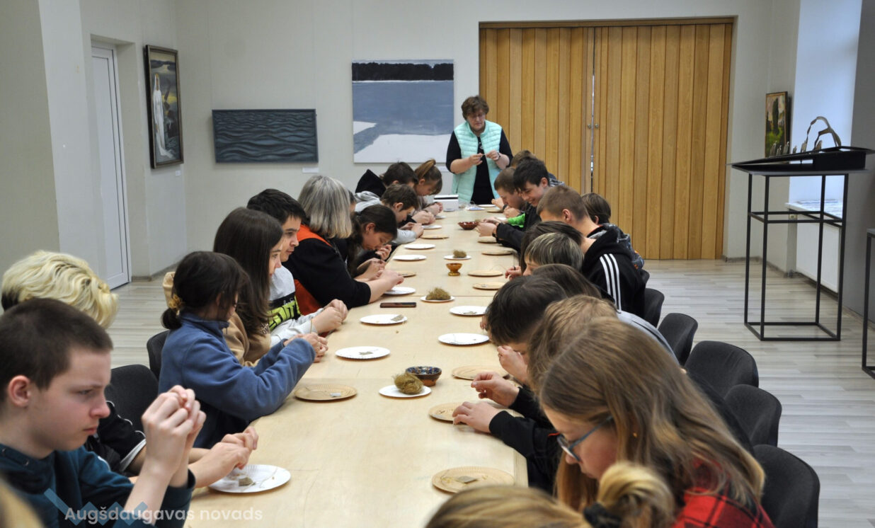 Toties 5. aprīlī bija Preiļi un brīnišķīga nodarbība “Linu pogaļas stāsts” Preiļu Vēstures un lietišķās mākslas muzejā. Tās laikā skolēni varēja uzzināt, ka Latgale izsenis bija linu audzēšanas reģions. Diemžēl tagad to vairs nevar apgalvot. Linu var daudzveidīgi izmantot. No lina var iegūt šķiedru – garo un īso. Garo šķiedru lieto audumu, maisu, apavu, diegu, tapešu, tauvu, auklu un buru ražošanā, toties īso – būvmateriālu ražošanā. Piemēram, presētu skaidu plašu, šķiedras cementa plākšņu, sausās javas, apmetuma, dobo ķiegeļu izgatavošanai. Lieto arī kā dabisku jumta seguma un izolācijas materiālu, skaņas izolatoru. Arī linoleja sastāvā ir lineļļas sveķi. Tāpat no lina iegūst Latvijā tik populāro lineļļu un linsēklas, ko lieto uzturā. Nodarbības laikā katrs skolēns pagatavoja lina rokassprādzi, bet noslēgumā visus gaidīja degustācija – īsta Preiļu rupjmaize ar lineļļu.