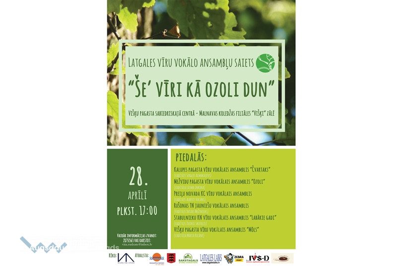 28. aprīlī plkst. 17:00 Malnas koledžas mācību īstenošanas vietas Višķi zālē notiks Latgales vīru vokālo ansambļu saiets "Še` vīri kā ozoli dun".