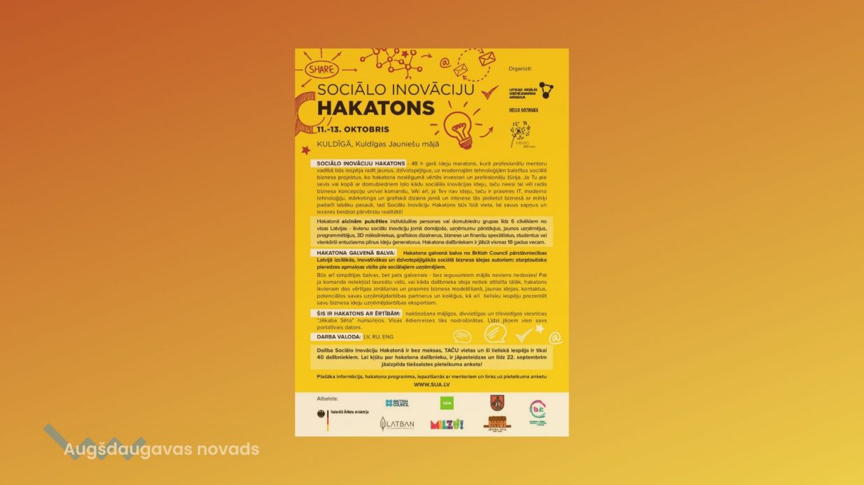 Latvijas Sociālās uzņēmējdarbības asociācija sadarbībā ar Daugavpils jauniešu biedrību “D-Juno”, Kurzemes NVO centru un Vācijas Ārlietu ministrijas atbalstu organizē nu jau otro Sociālo inovāciju hakatonu, kas šoreiz notiks Kuldīgā. Pagājušajā gadā hakatons veiksmīgi norisinājās Daugavpilī. Tas būs 48 h garš ideju maratons, kurā profesionālu mentoru - ekspertu vadībā komandām būs iespēja radīt jaunus, dzīvotspējīgus, uz modernajām tehnoloģijām balstītus sociālā biznesa projektus, ko pasākuma noslēgumā vērtēs investori un uzņēmējdarbības eksperti. Hakatons norisināsies no 11. līdz 13. oktobrim Kuldīgas Jauniešu mājā. Lai veicinātu sabiedrības saliedētību, hakatonā aicināti pulcēties dalībnieki no visiem Latvijas reģioniem, un pasākums norisināsies trīs valodās – latviešu, angļu un krievu.