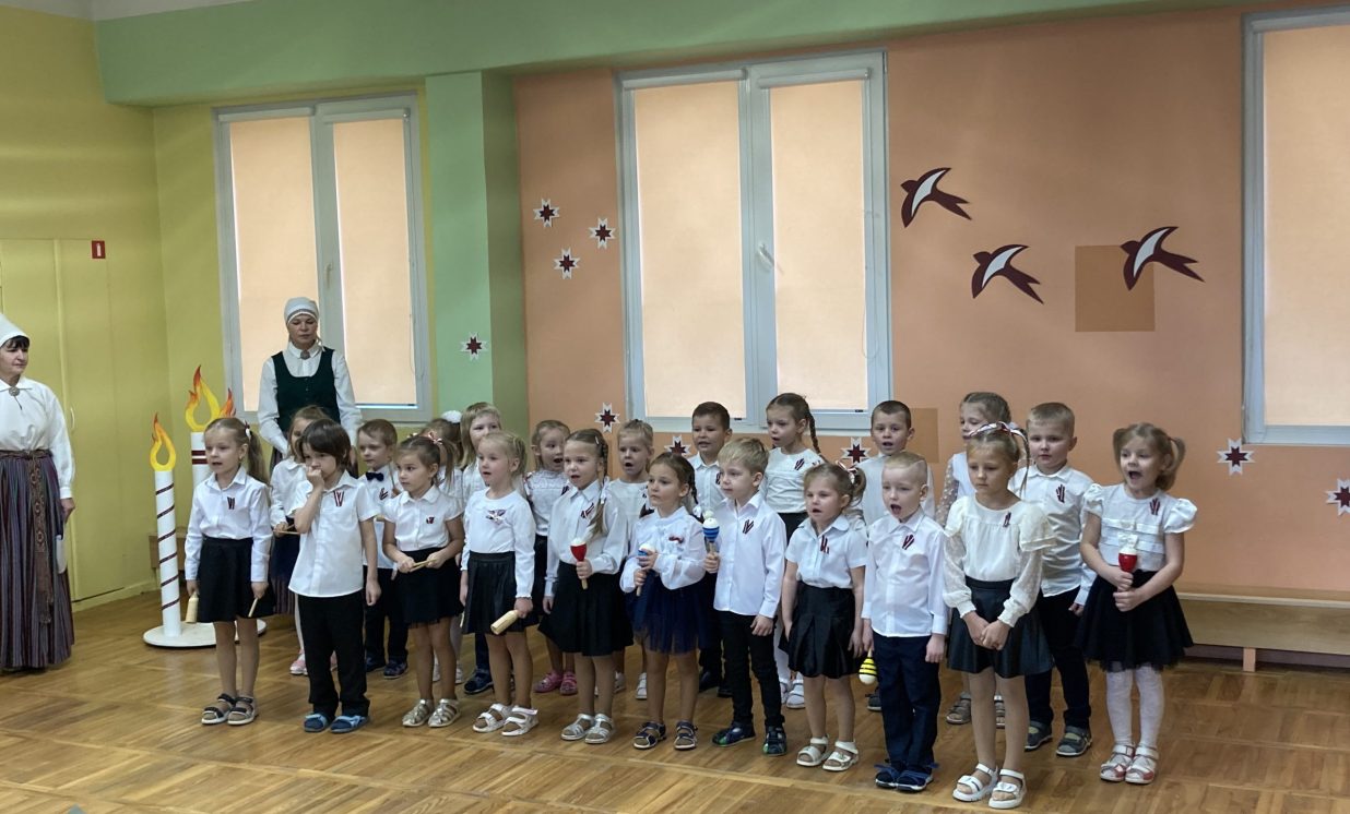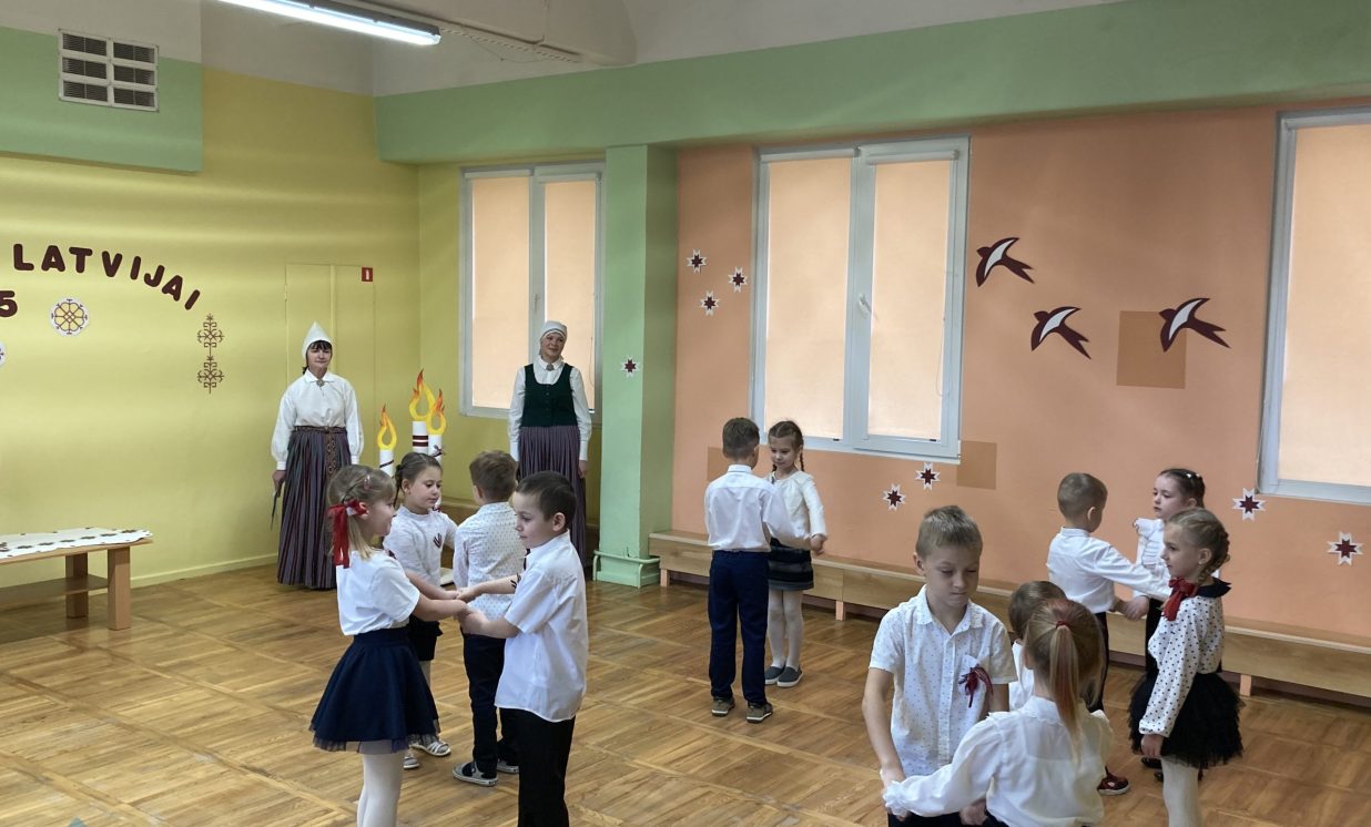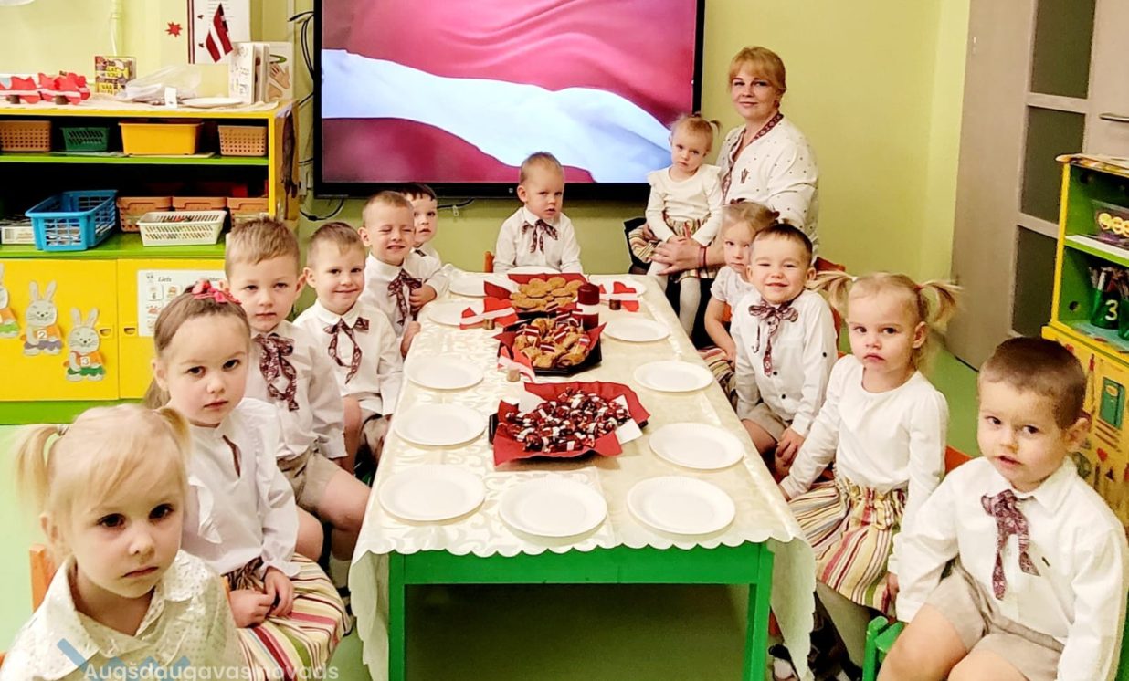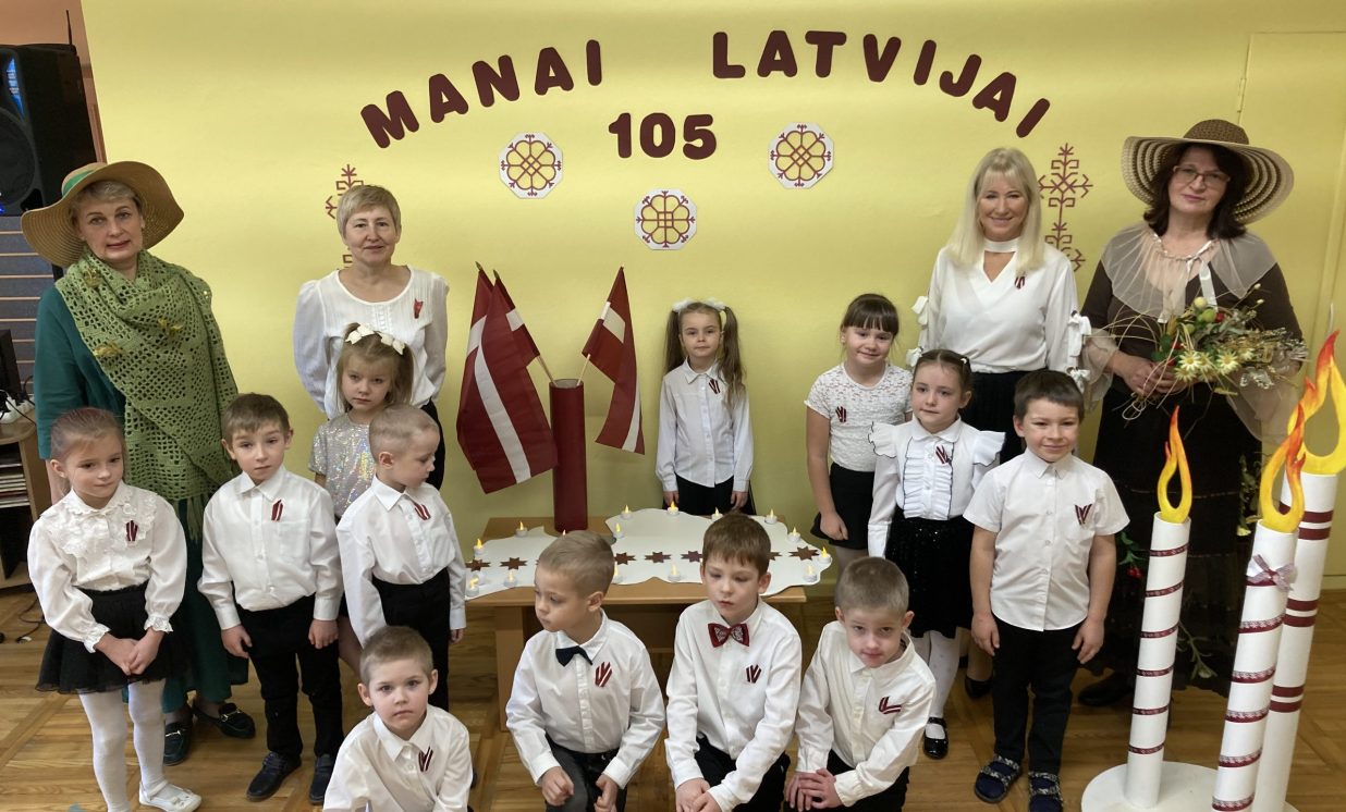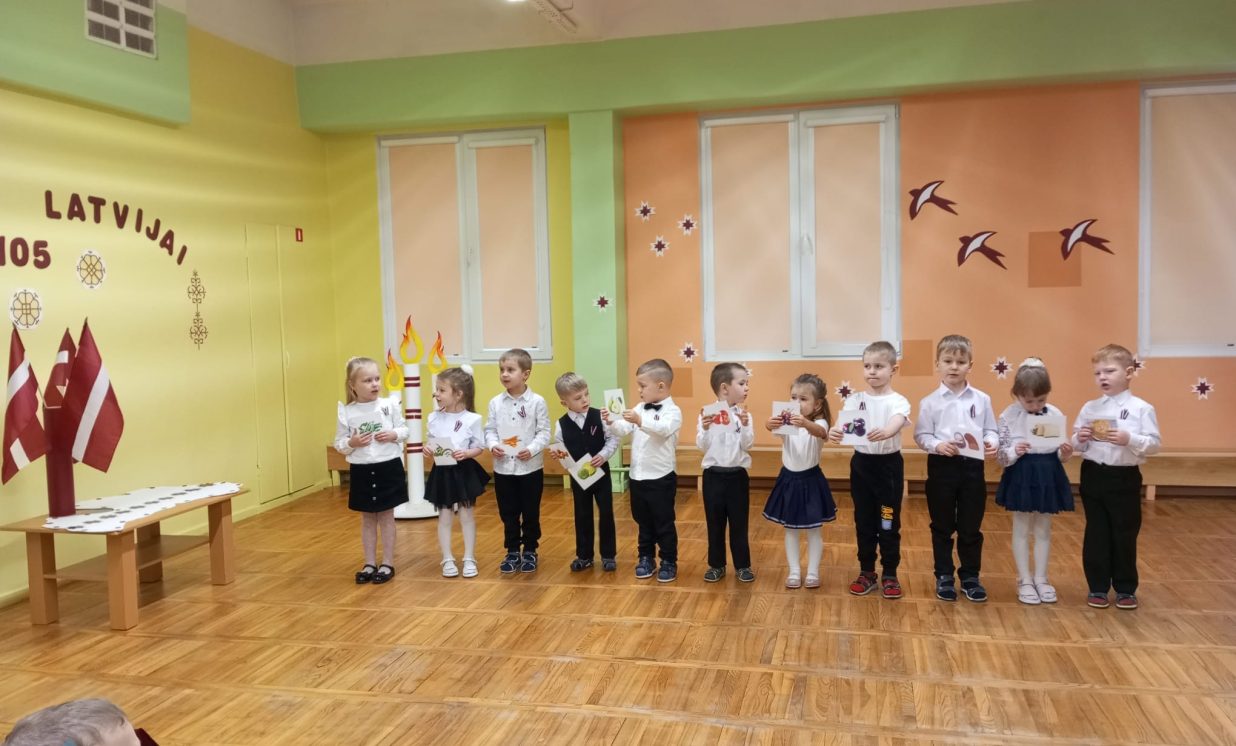 Kā ikkatru gadu novembris Ilūkstes PII “Zvaniņš” atnāca patriotiskās noskaņās. Ar gaismas, siltuma, mīlestības piepildītām domām un laimes vēlējumiem savai dzimtenei mūsu pirmsskolas iestādes bērni no “Skudriņu”, “Zīļuku”, “Saulīšu”, “Ežuku”, “Lācēnu”, “Bitīšu”, ”Ābolīšu”, “Zaķēnu” un “Rūķīšu” grupiņām gatavojās mūsu Latvijas 105. gadadienai. Ik dienas rotaļnodarbībās mazie ķipari izstaigāja dzimtenes teritorijas kontūrkartē- iepazina pilsētas, upes, ezerus, dzīvo radību, krāšņās dabas ainavas, kultūru, simboliku un tradīcijas. Grupiņās tika veidoti radošie darbiņi, veltīti mūsu tēvzemei.