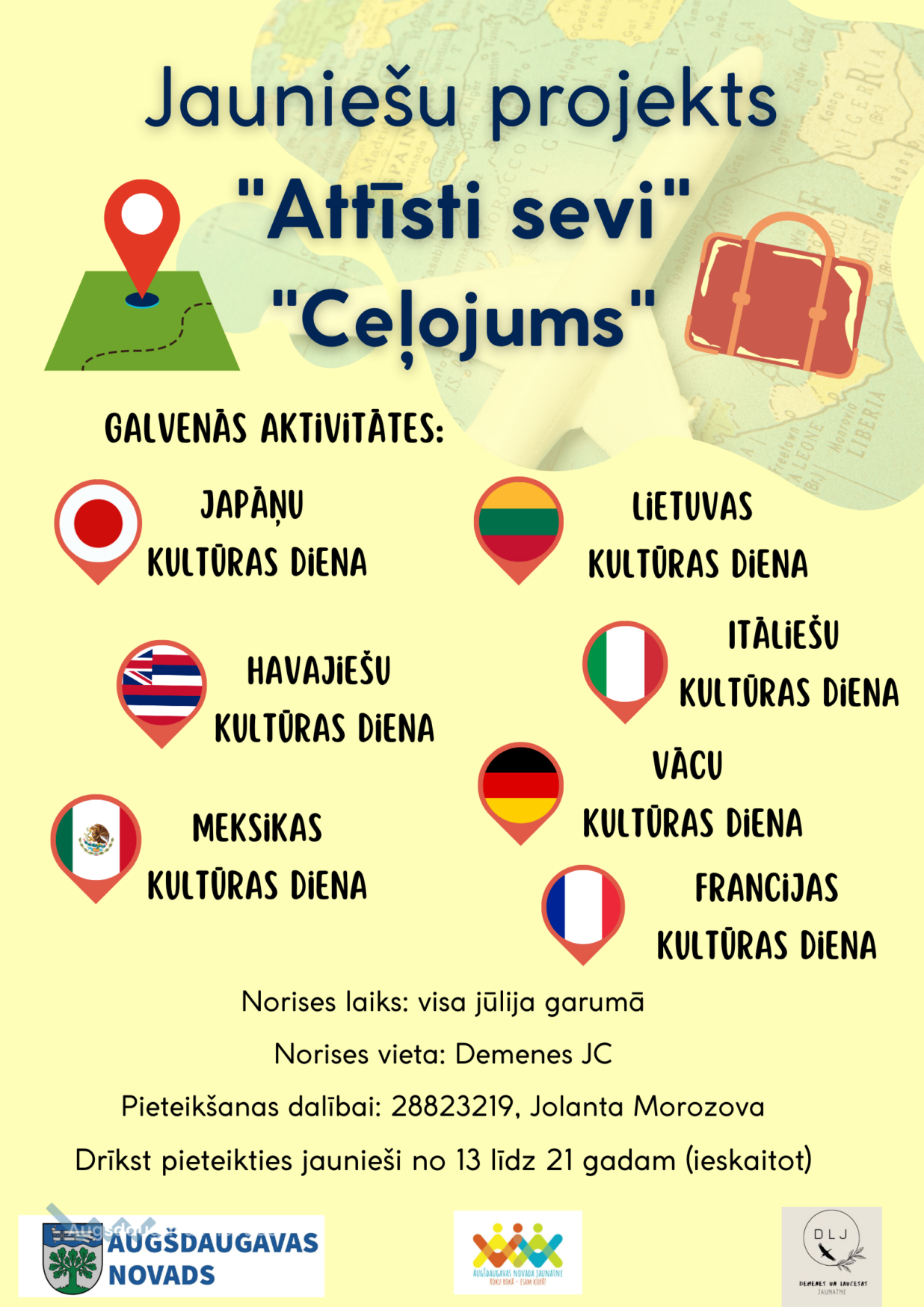 Aicinām Laucesas un Demenes pagasta jauniešus pieteikties aktivitātēm “Ceļojums” Augšdaugavas novada iniciatīvu projekta “Attīsti sevi” ietvaros.