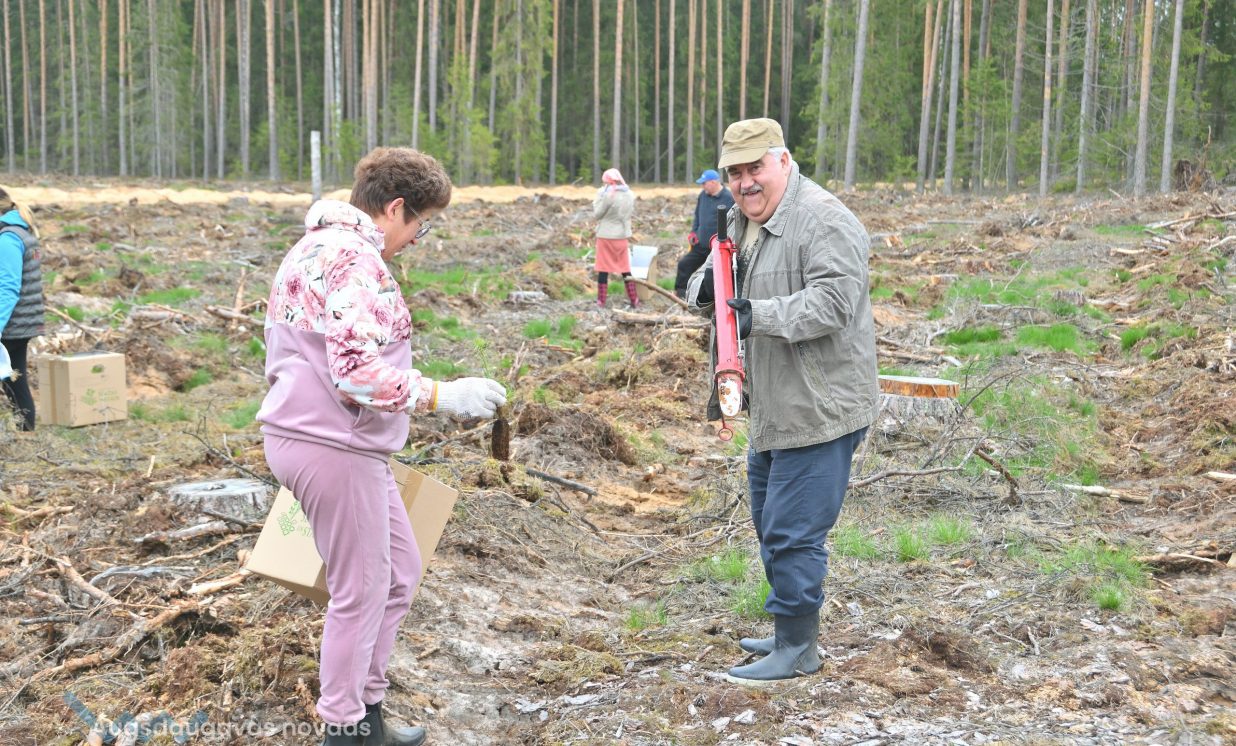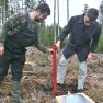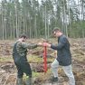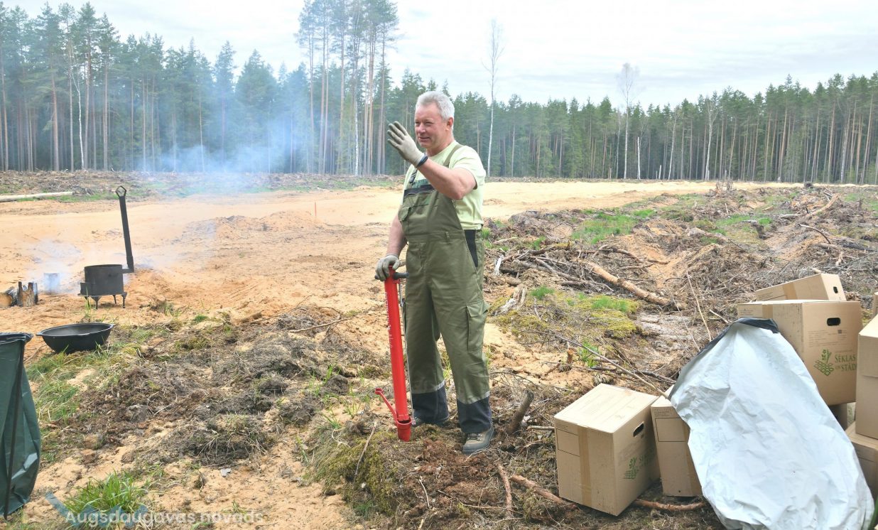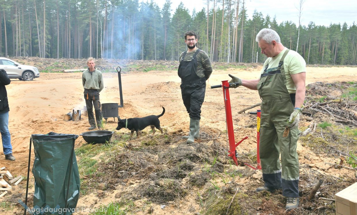 “Te LVM novākuši ražu, sagatavojām augsni, bet tagad stādam priedītes, lai mūsu mazbērniem būtu mežs,” turpina LVM Sventes iecirkņa mežkopis Aivars Litiņš.