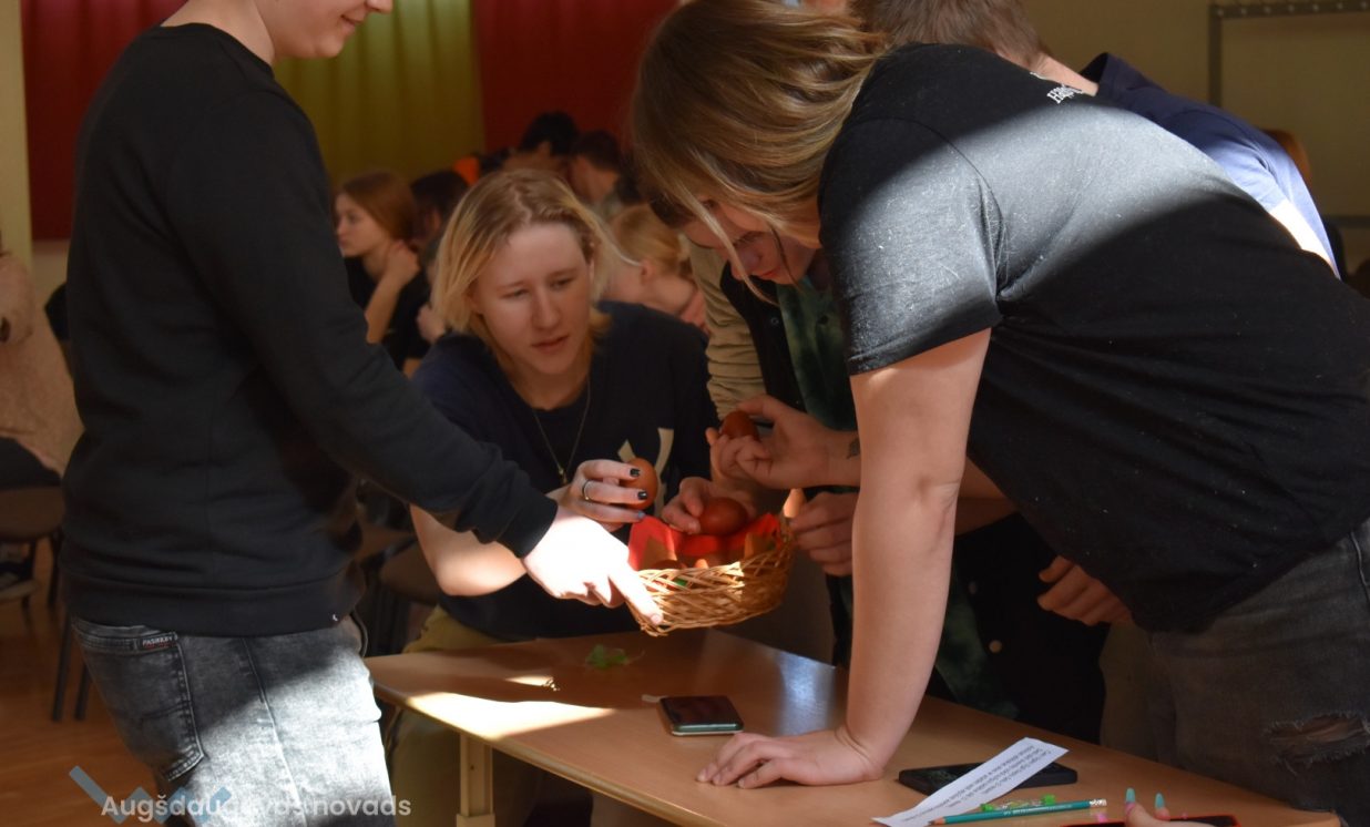 Pasākumā "Lieldienu prieki" 9.-12.klašu skolēnu komandas varēja sacensties zināšanās par šiem svētkiem interaktīvā Kahoot-viktorīnā. Viktorīnā tika piedāvāti neparasti un interesanti fakti par Lieldienām. Lai jautrāk pavadītu laiku, komandām tika piedāvāti dažādi konkursi: Lieldienu tradīcijas, Krāsainie vārdi, Veiklākie olu nesēji , Ātrrunāšanas konkurss - Mēles mežģis, Lieldienu ticējumi un Olu ripināšanas sacensības. Par pareizajām atbildēm un uzvaru daudzos konkursos Lieldienu zaķis atnesa saldas dāvanas. Pasākums izvērtās ļoti priecīgs, kā tam īstās Lieldienās arī jānotiek.