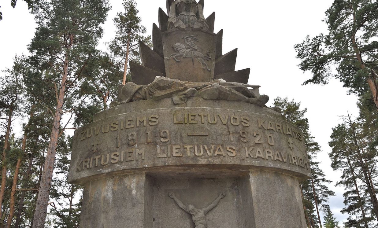 Uz tā atrodas uzraksts lietuviešu un latviešu valodā: “Žuvusiems Lietuvos kariams 1919. - 1920” jeb “Lietuvas kritušiem karavīriem.” Tālāk lietuviešu valodā: “Ceļiniek, pasaki Lietuvai, ka mēs kritām, Tēviju aizstāvēdami.”
