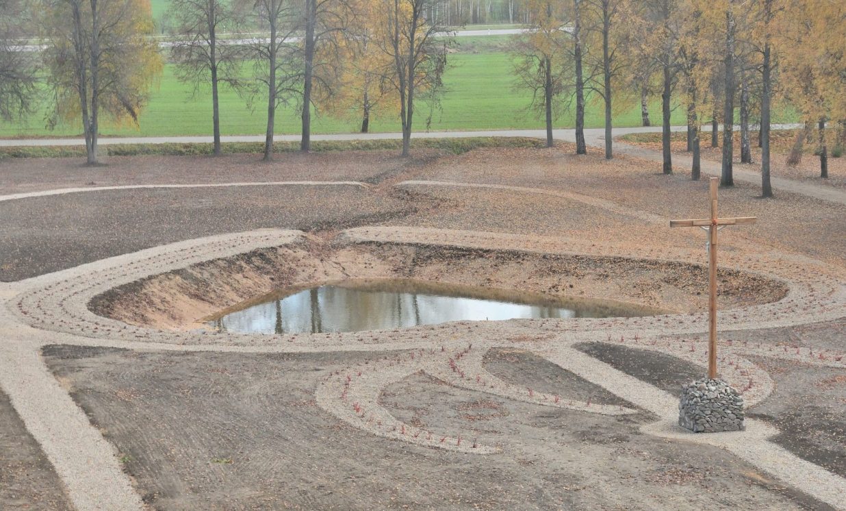 “Lūk, Sirds, kas tā mīlējusi cilvēkus, pilnīgi atdevusi sevi, lai apliecinātu viņiem savu mīlestību,” 1675. gadā Jēzus sacīja māsai Margaritai Marijai, atklājot savas caurdurtās Sirds noslēpumu, deva viņai 12 apsolījumus, kas attiecas uz tiem, kuri godinās Jēzus Sirdi. Vissvētās Jēzus Sirds svētkus 1765. gadā iedibināja pāvests Klements XIII, bet 1856. gadā tos sāka svinēt visā Romas katoļu Baznīcā, pateicoties pāvesta Pija IX iniciatīvai. Tāpēc Sirds dārza centrā ir krusts, dīķis sirds formā, kam apkārt ir pastaigu celiņi. Jau pavisam drīz tiks uzstādītas 12 plāksnes ar apsolījumu tekstu, soliņi un tiltiņš.